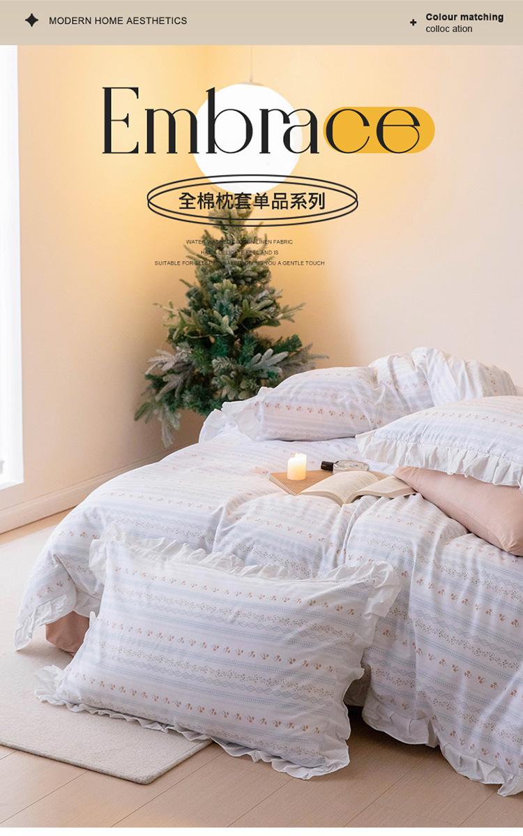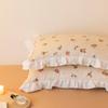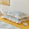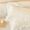 Fronha de algodão com babados florais pequenas estilo coreano, um par de fronhas de algodão artísticas simples 48x74cm