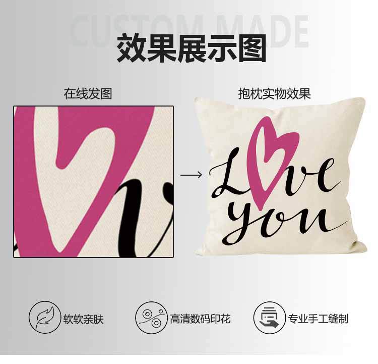 Nova fronha de linho rosa com estampa de amor para o dia dos namorados, capa de almofada para sala de estar, quarto e sofá
