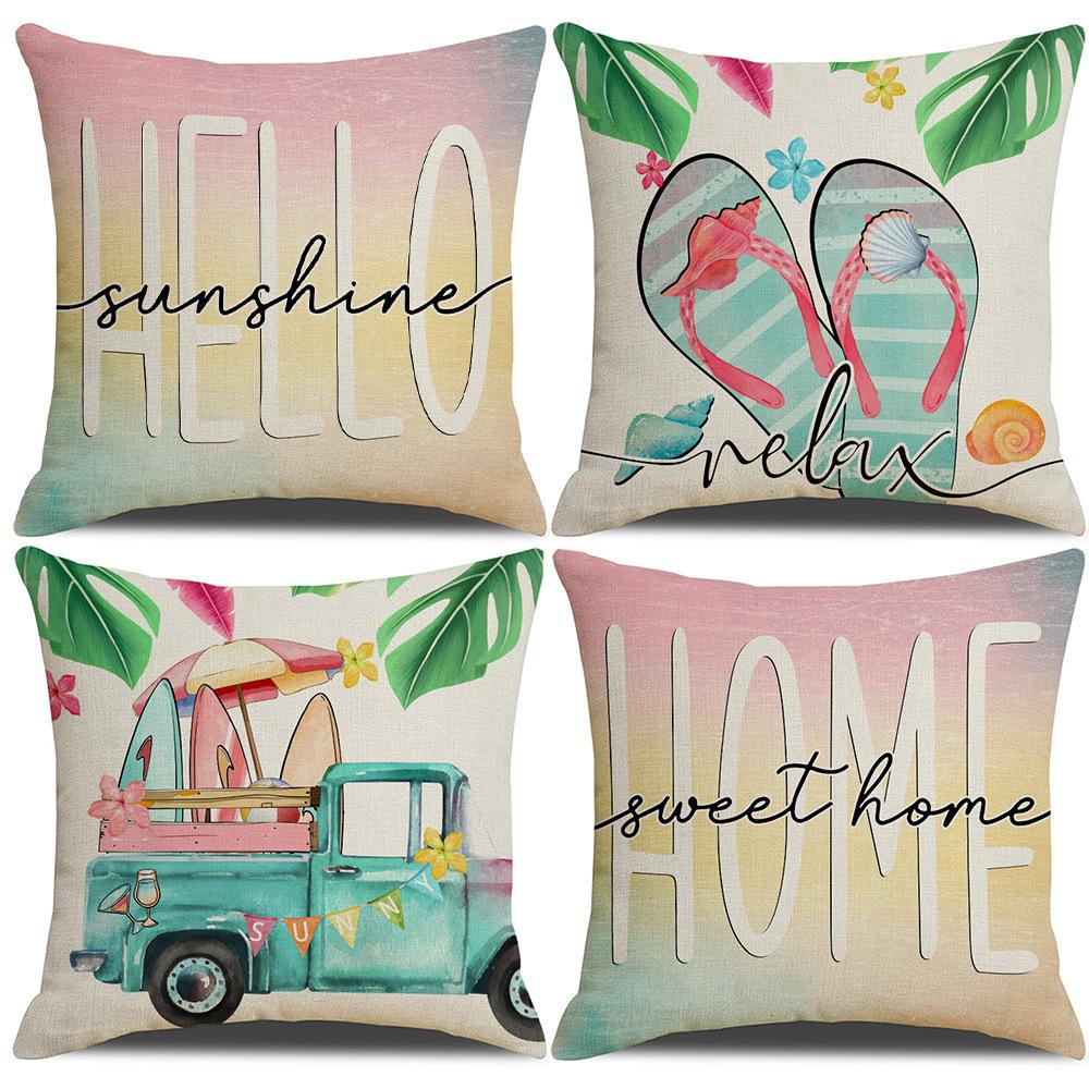 2025 Nova Primavera e Verão Bonito Feriado Fronha Linho Impresso Casa Travesseiro Sala de estar Sofá Festa Capa de Almofada