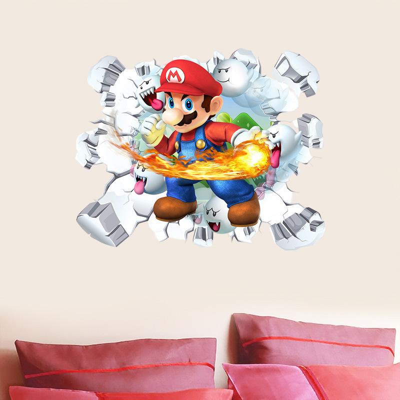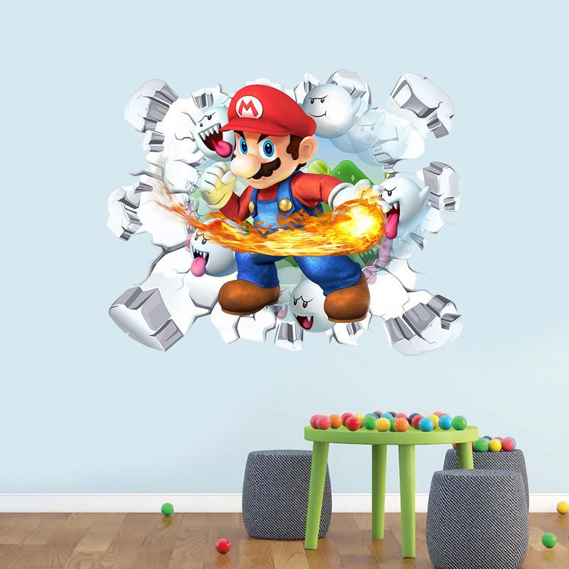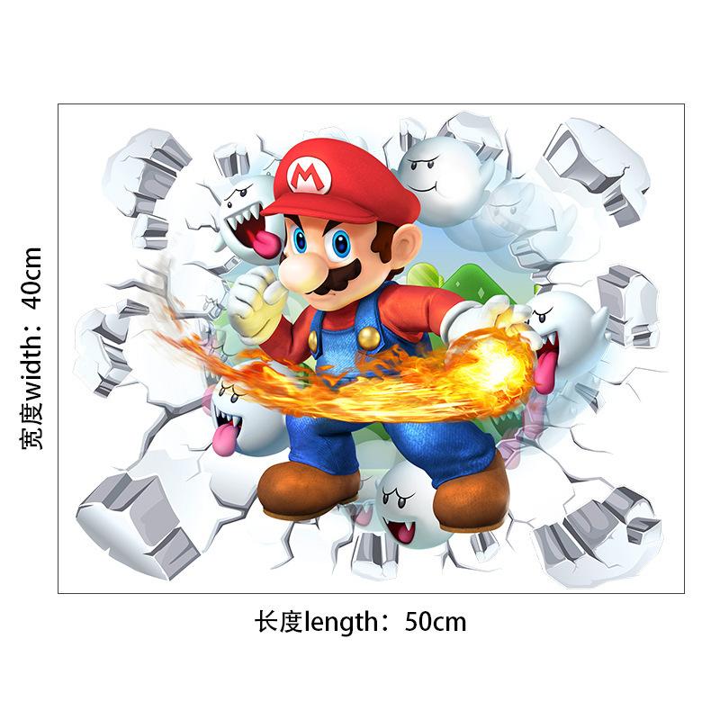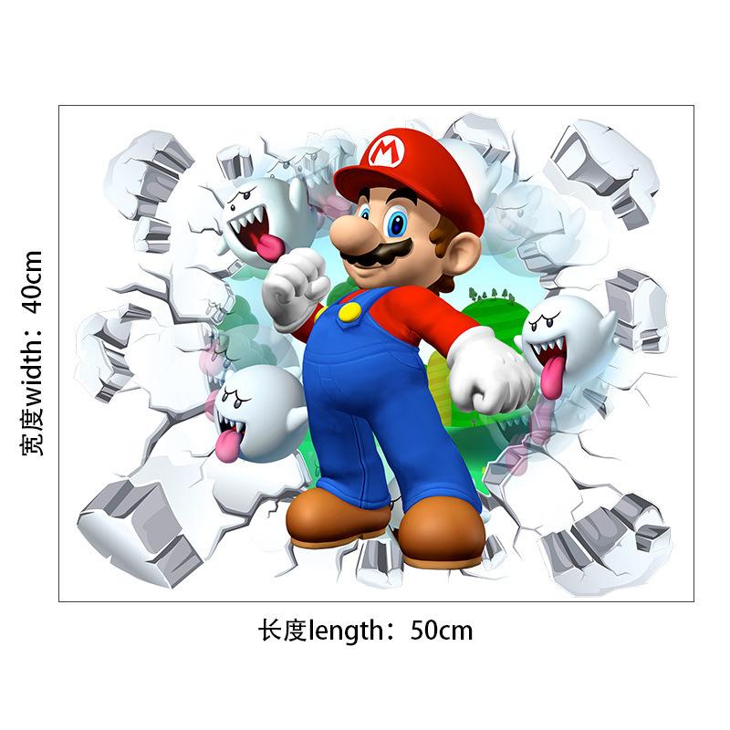 Adesivo de parede decorativo de parede de quarto infantil Mario PVC autoadesivo animação de desenho animado 3D adesivo de parede quebrado Mario Cross-border