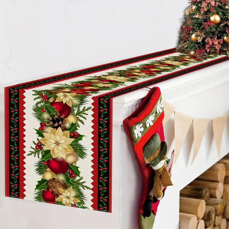Novo Caminho de Mesa de Natal Transfronteiriço da Amazon Toalha de Mesa de Linho Jogo Americano Caminho de Chá Decoração de Pano de Balcão de Sala de Estar