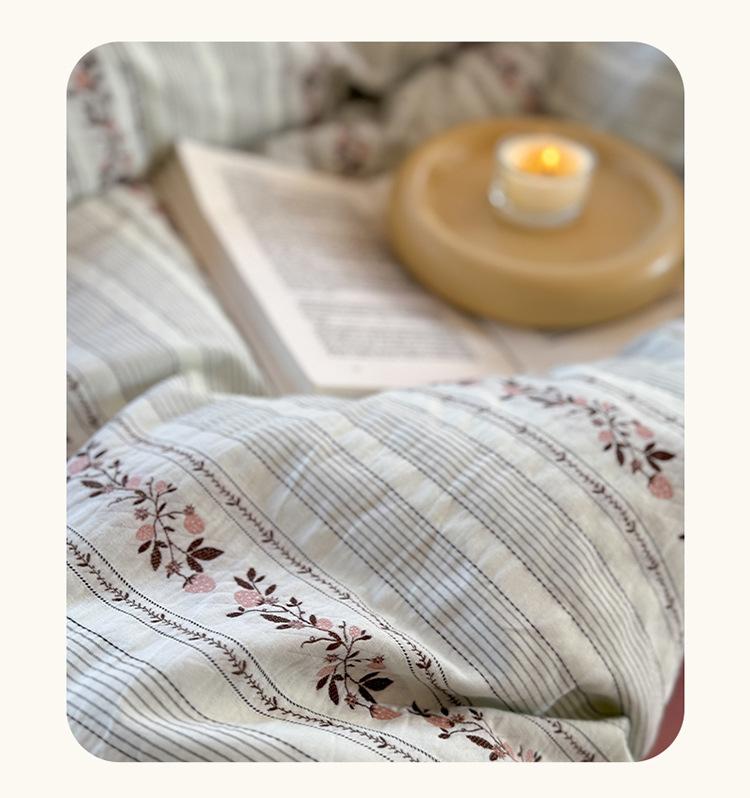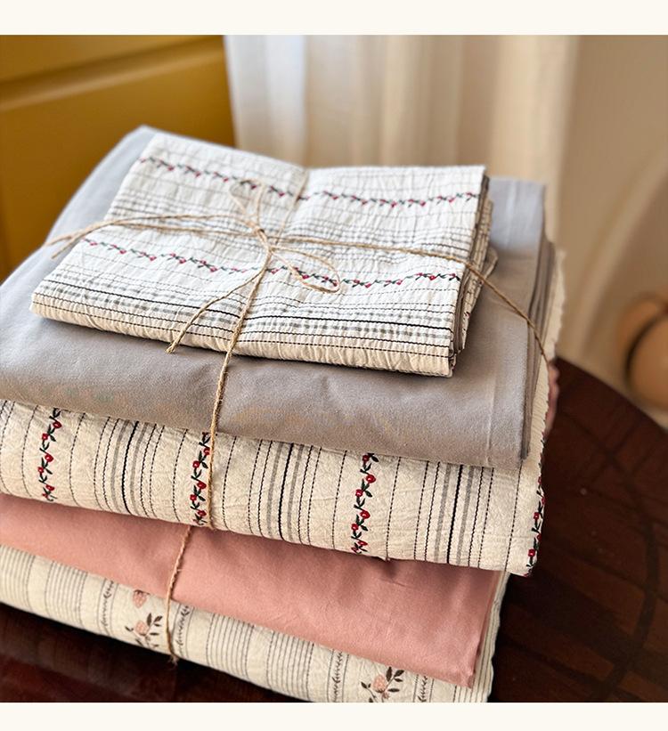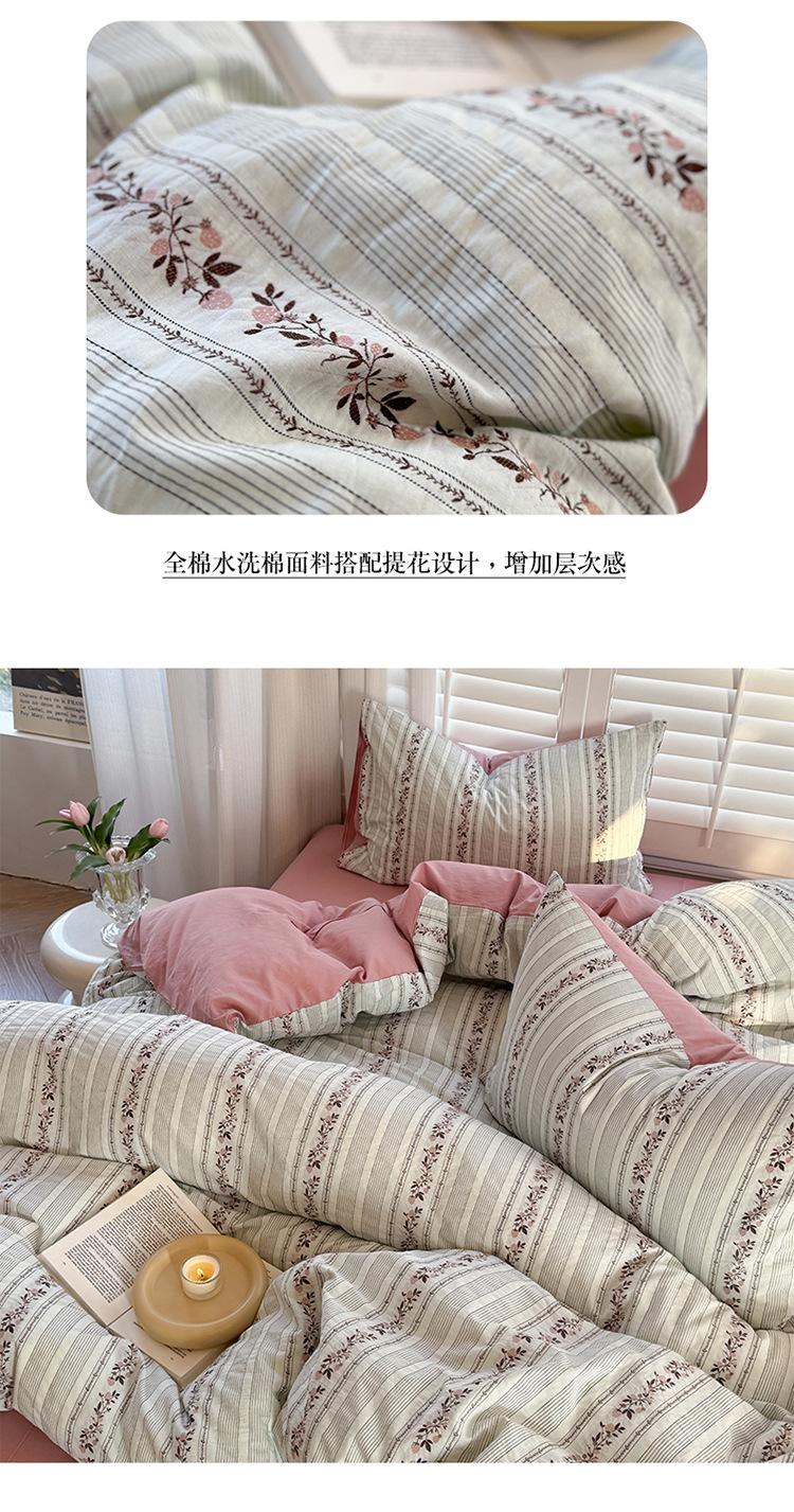 Conjunto de quatro peças de algodão jacquard com lavagem de algodão estilo retrô, lençol de cama com coração para meninas coreanas, atacado