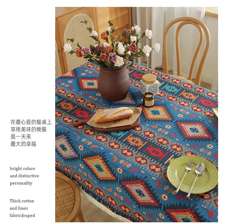 Compre Toalha de Mesa Americana Retrô Espessa de Algodão e Linho Estilo Étnico Boêmio Toalha de Mesa Geométrica Capa Jacquard Toalha de Mesa no atacado no Joom.pro