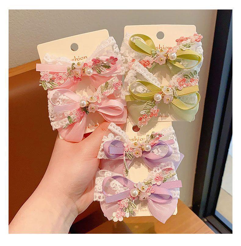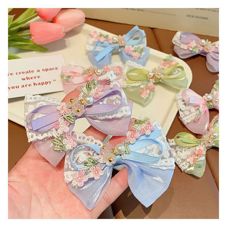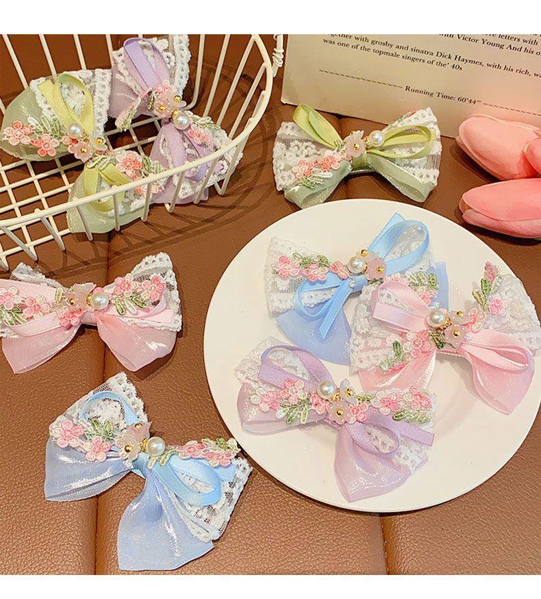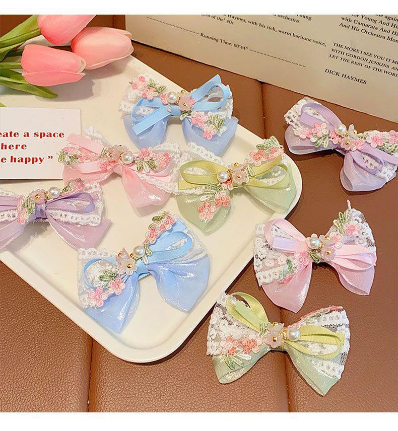 Acessórios para cabelo infantil laço de pérola grampo de cabelo meninas cabelo quebrado renda grampo de cabelo cocar bebê tecido doce clipe feminino