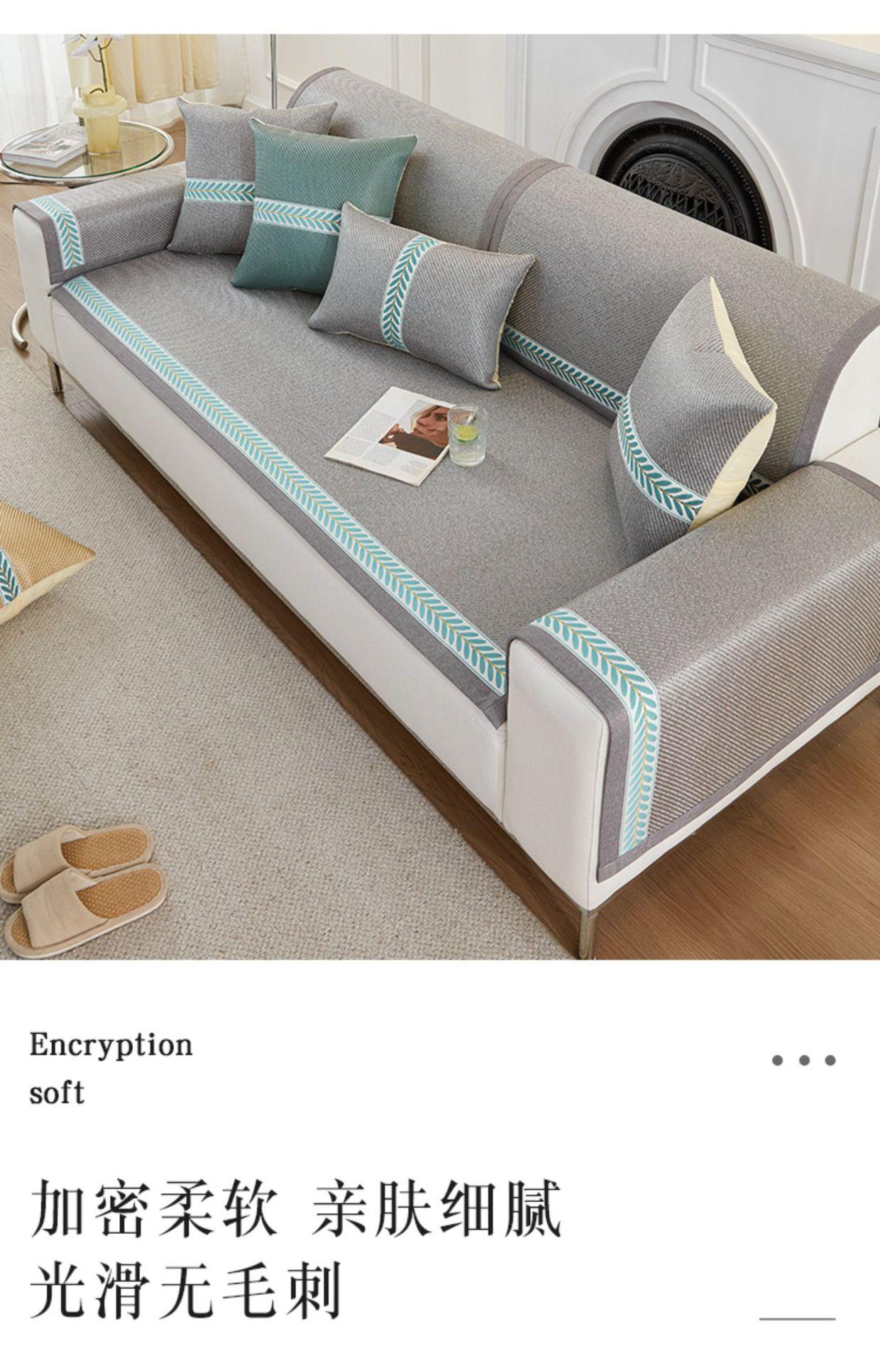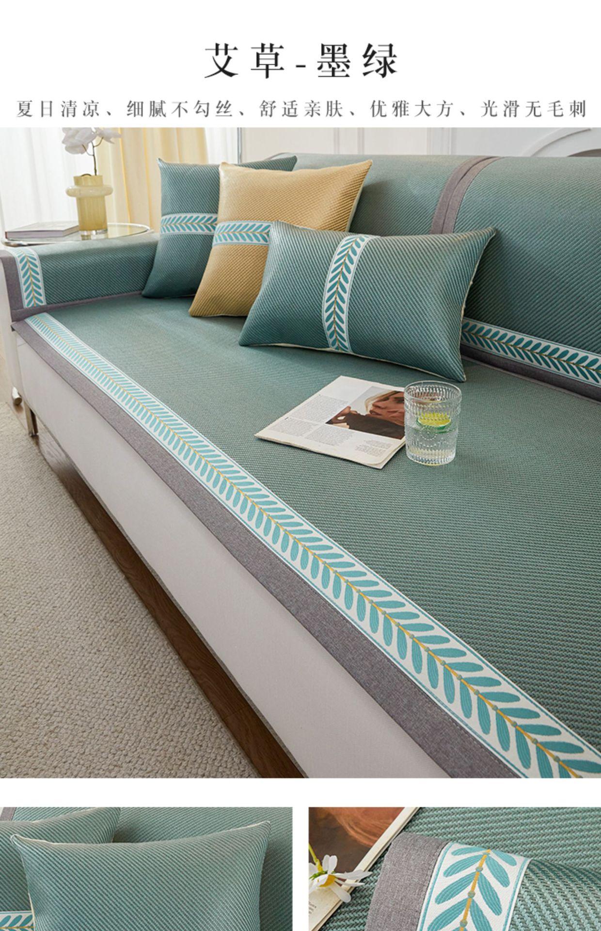 2024 Nova Almofada de Sofá Tapete de Verão Tapete Frio Tapete de Seda Gelada Tapete de Rattan Verão Quatro Estações Universal Capa Antiderrapante Almofada