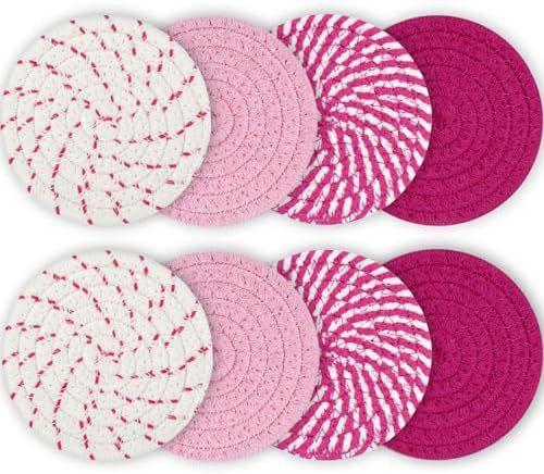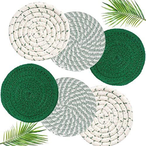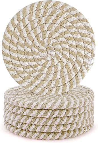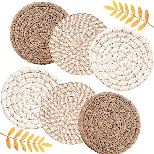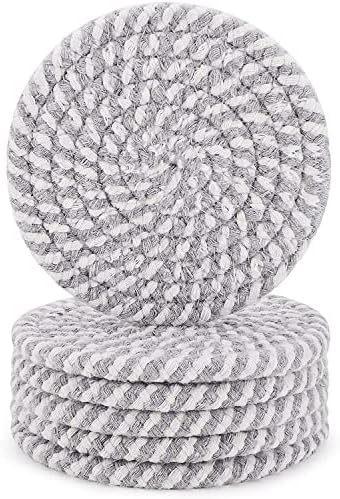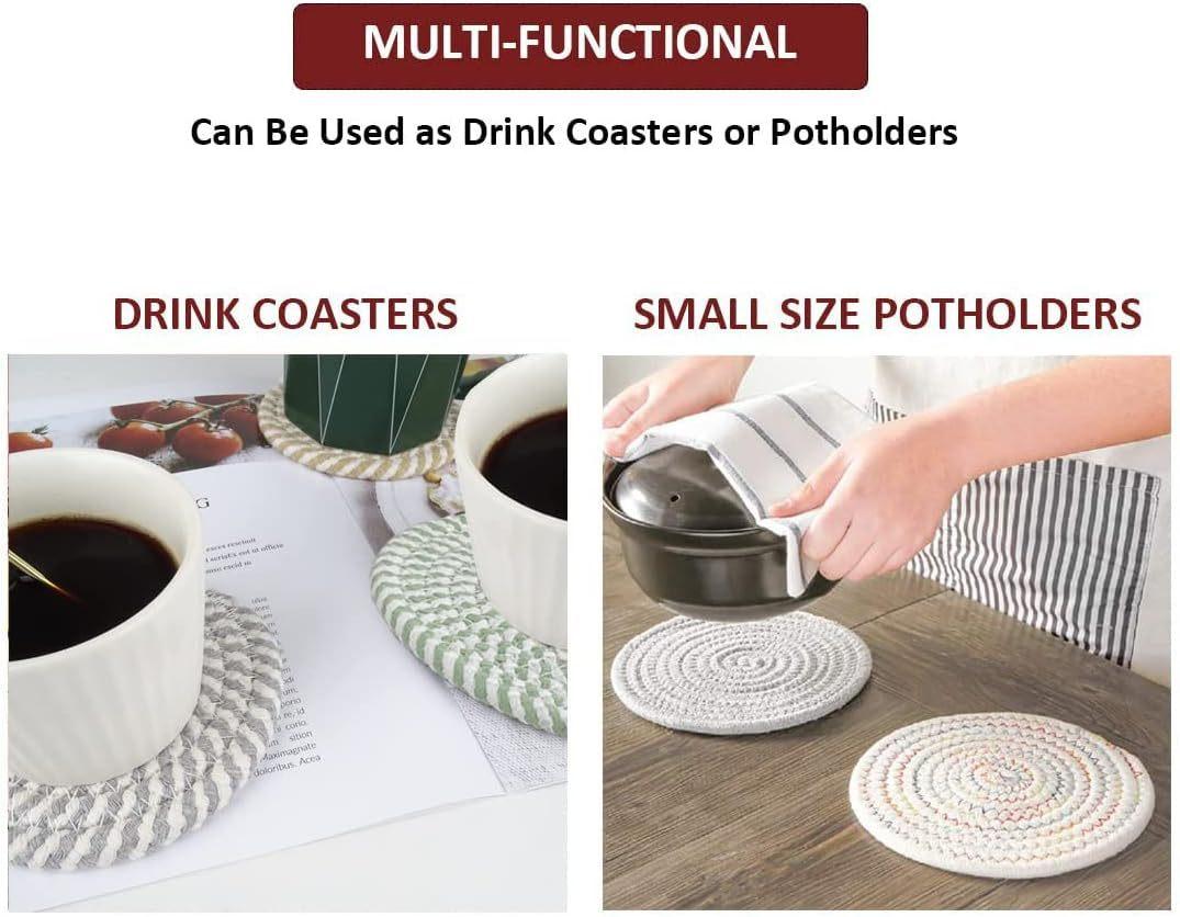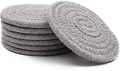Descansos de Corda de Algodão para Uso na Cozinha, Almofadas Tricotadas Isolantes de Calor, Redondos Antiderrapantes Anti-Escaldantes de Fio de Algodão, Almofadas Isolantes de Calor, Almofadas para Copos e Tigelas