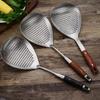 Coador de pimenta de aço inoxidável com alça, cabo de madeira para uso doméstico, colher de macarrão para bolinhos, filtro frito, malha para vazamento, utensílio de cozinha