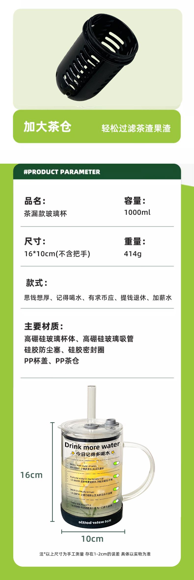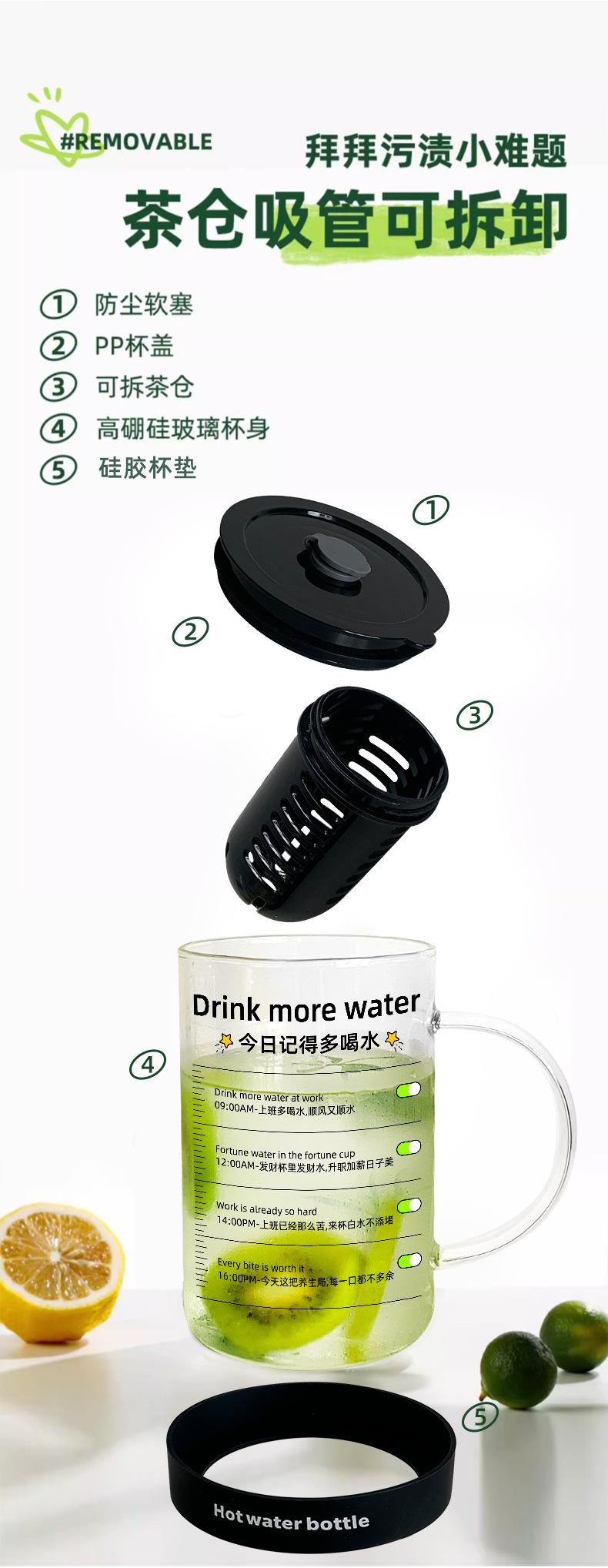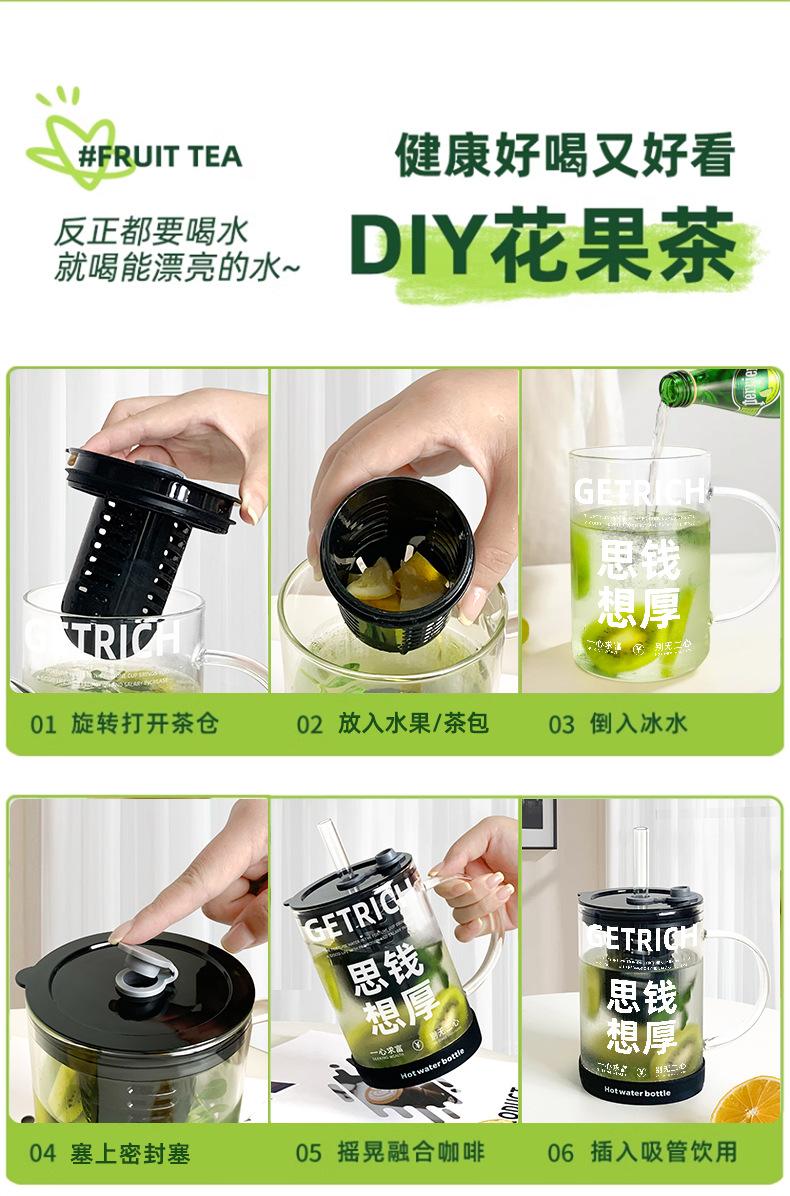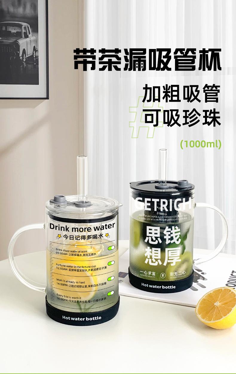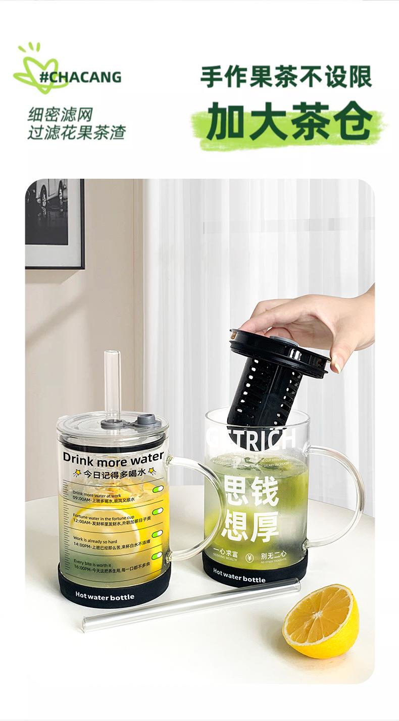 Copo de Vidro com Escorredor de Chá Copo de Água de Grande Capacidade 2025 Novo Copo Feminino de Alto Nível com Tampa Copo com Canudo Resistente a Altas Temperaturas Masculino