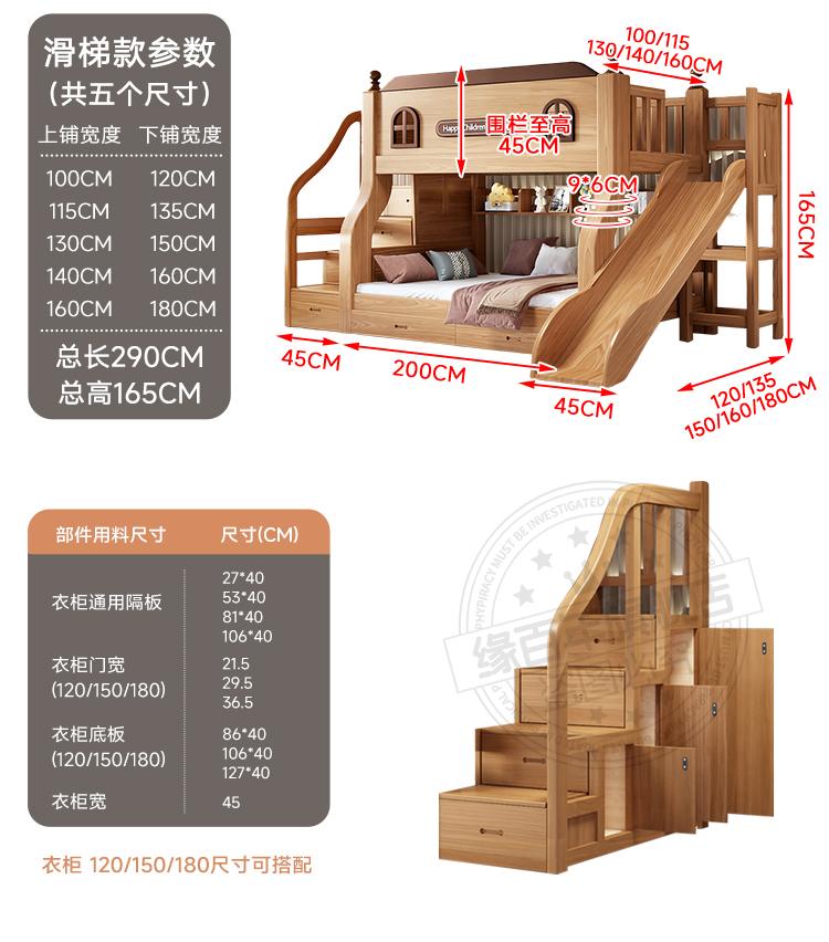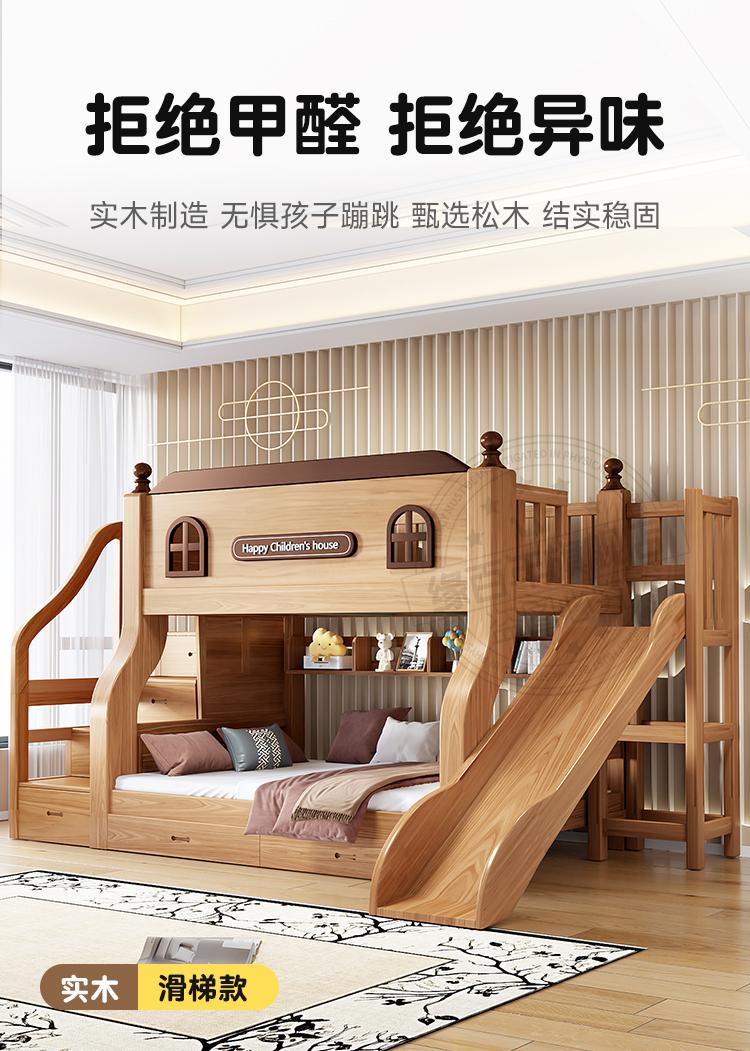 ☆★Golden oak slide + bookshelf + double drawers + mattress + electric drill (installation not included)☆★