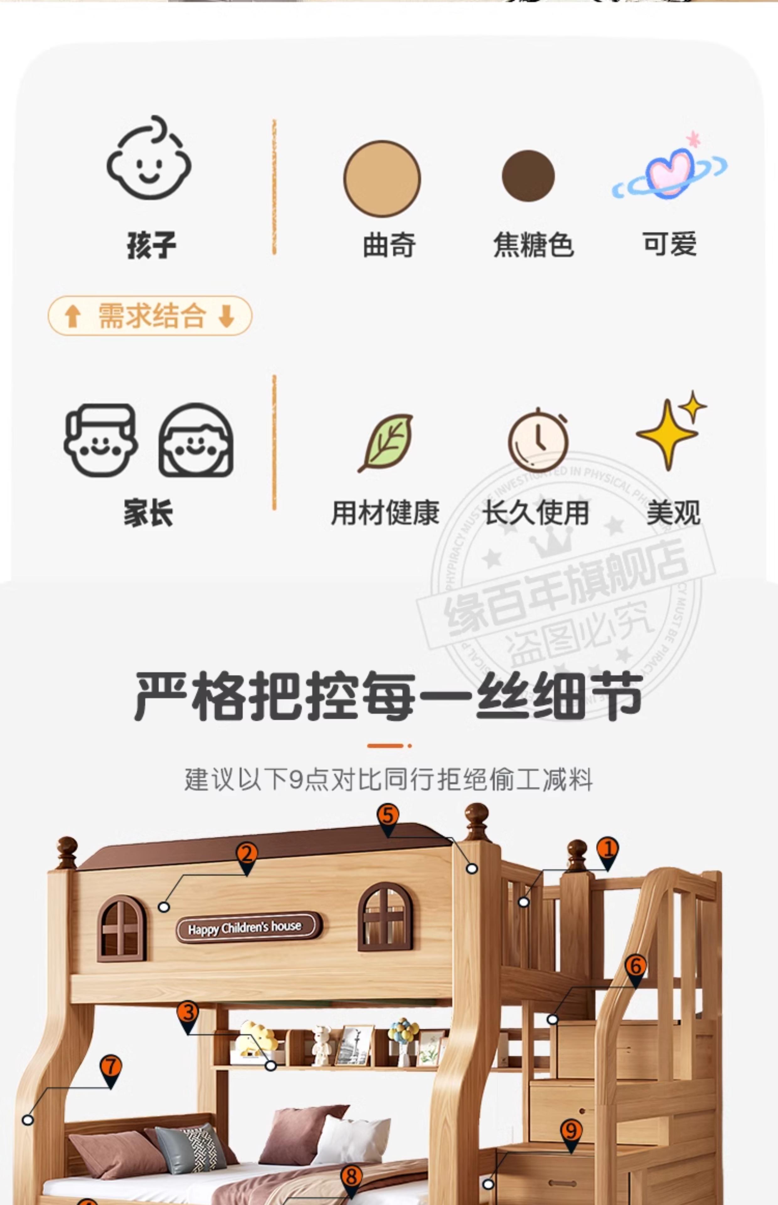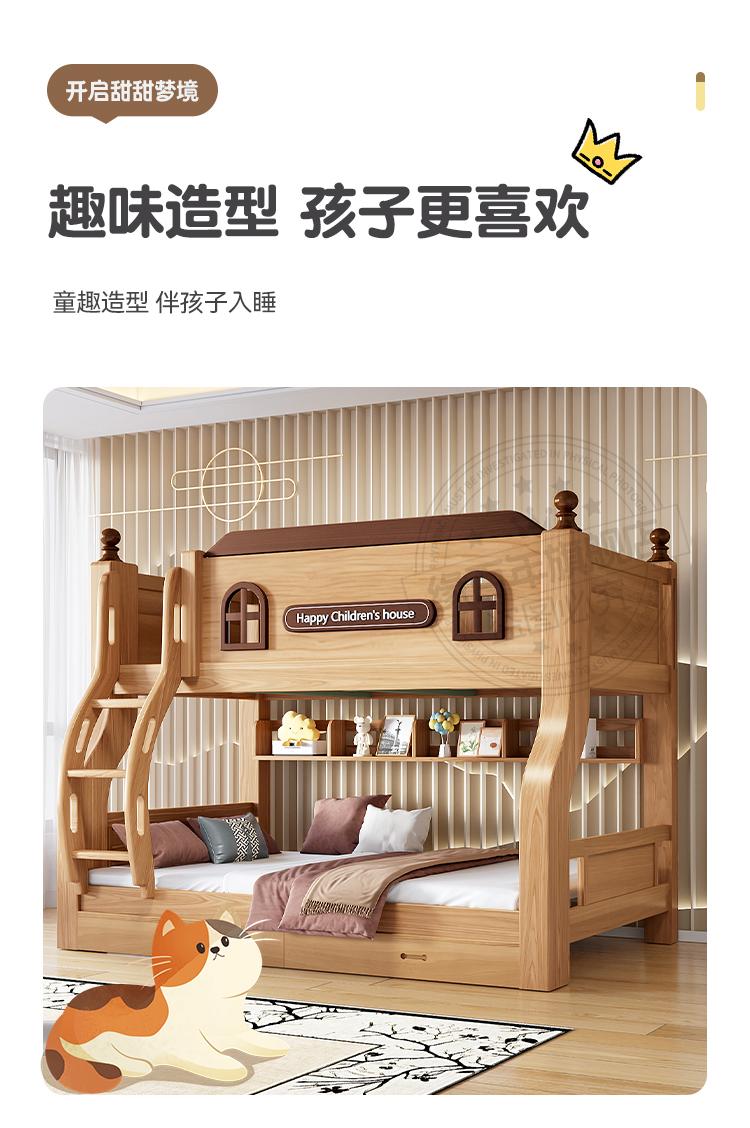 ☆★Golden oak straight ladder + bookshelf + double drawers + mattress (installation included)☆★