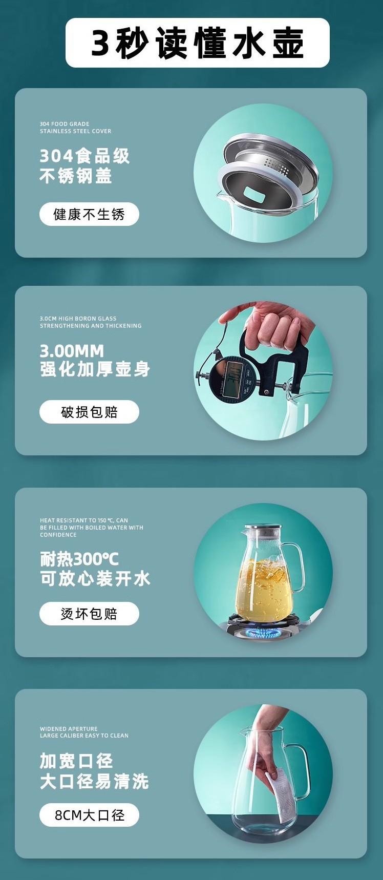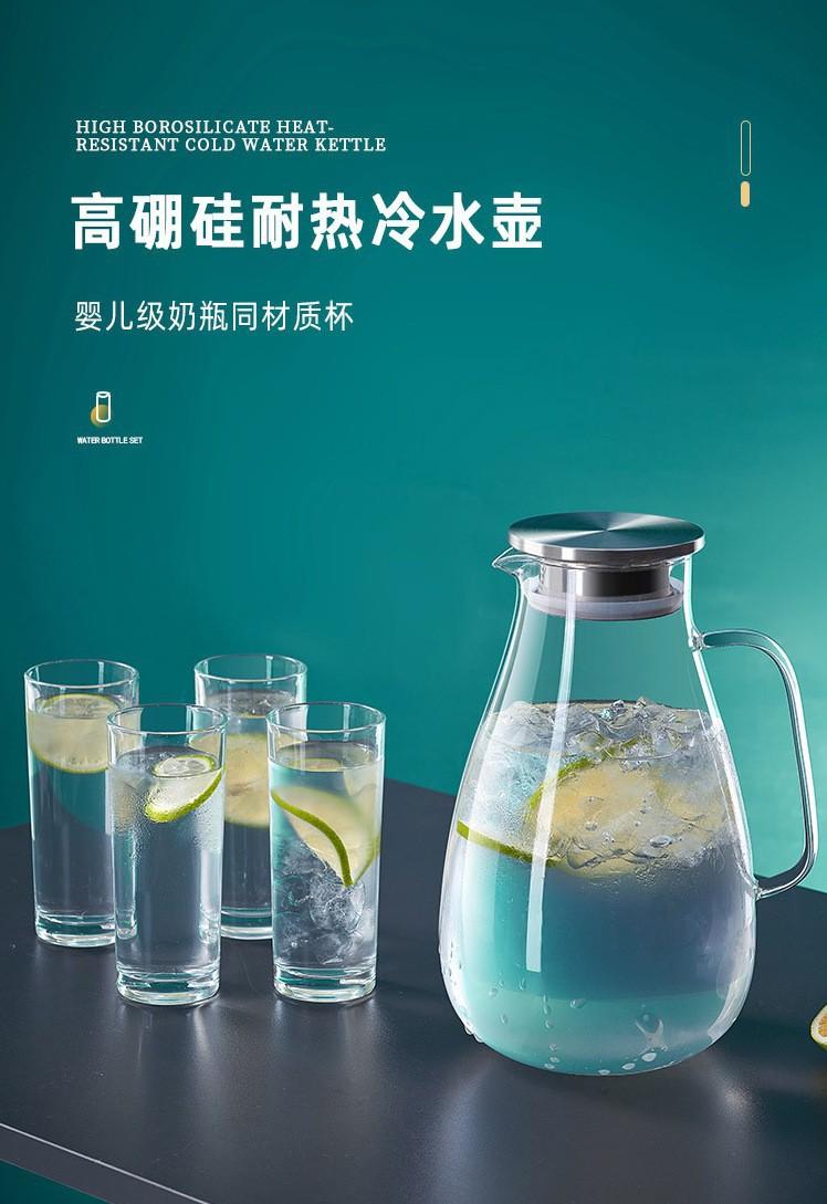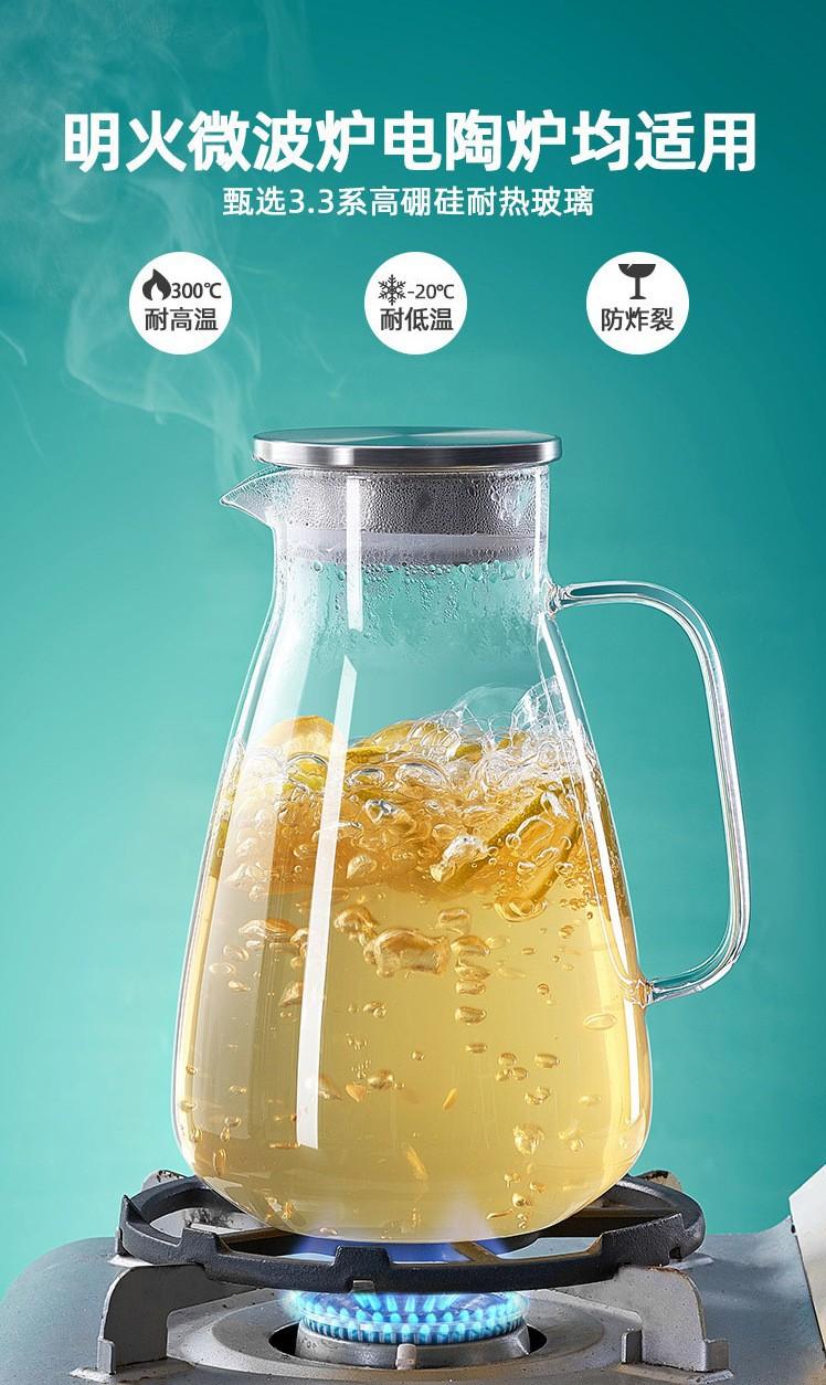 Chaleira fria resistente a altas temperaturas doméstica Chaleira fria de vidro de grande capacidade Copo de água fervida Sala de estar Água Pashpot Bule terno