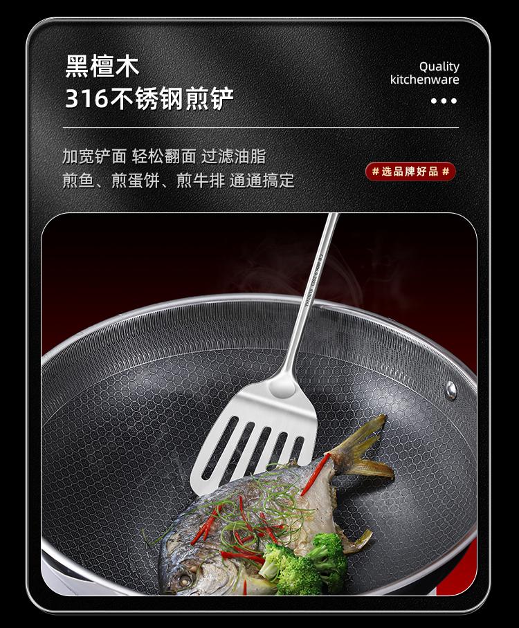 316 espátula de aço inoxidável espátula de cogumelo espátula de fritura doméstica de qualidade alimentar espátula de ferro com cabo de madeira colher de fritura espessada