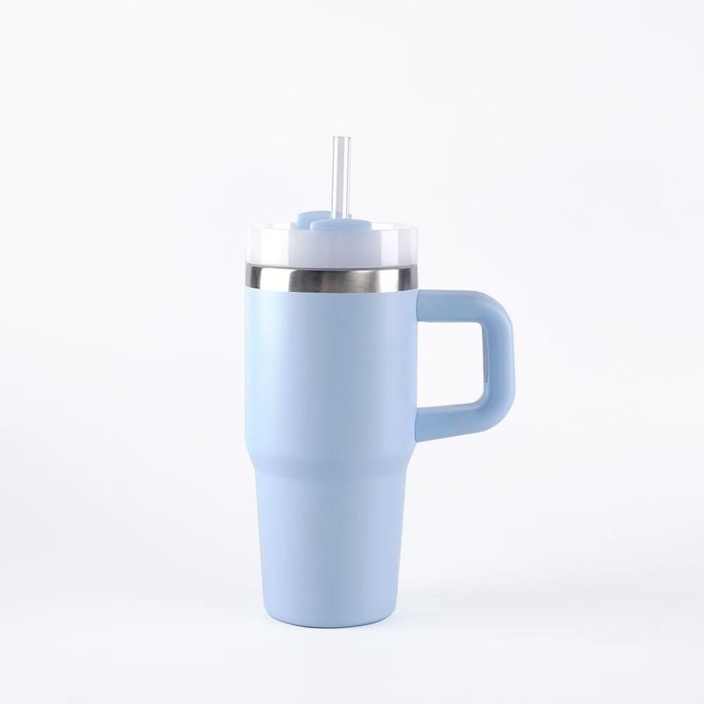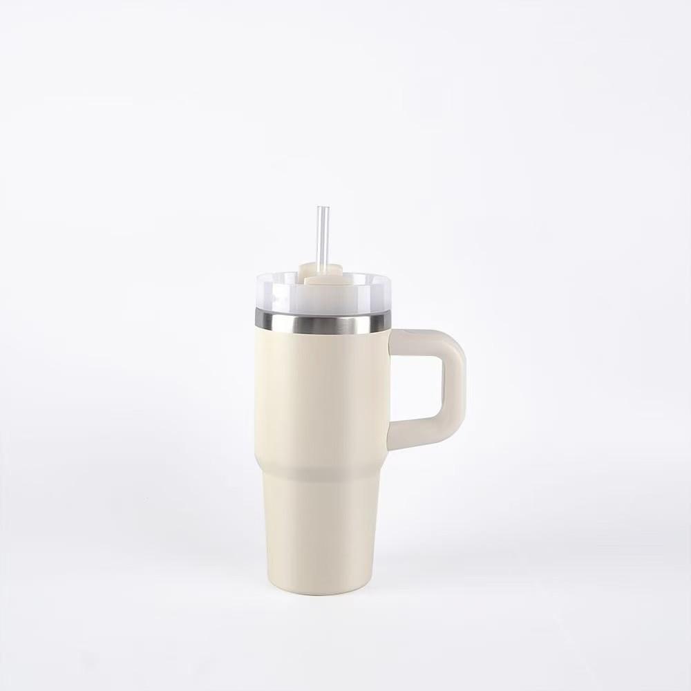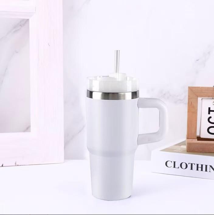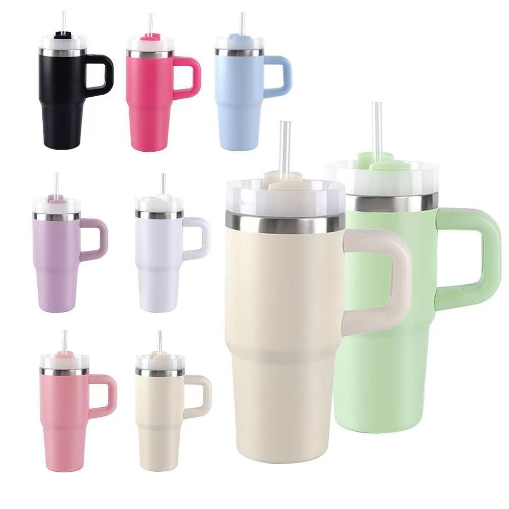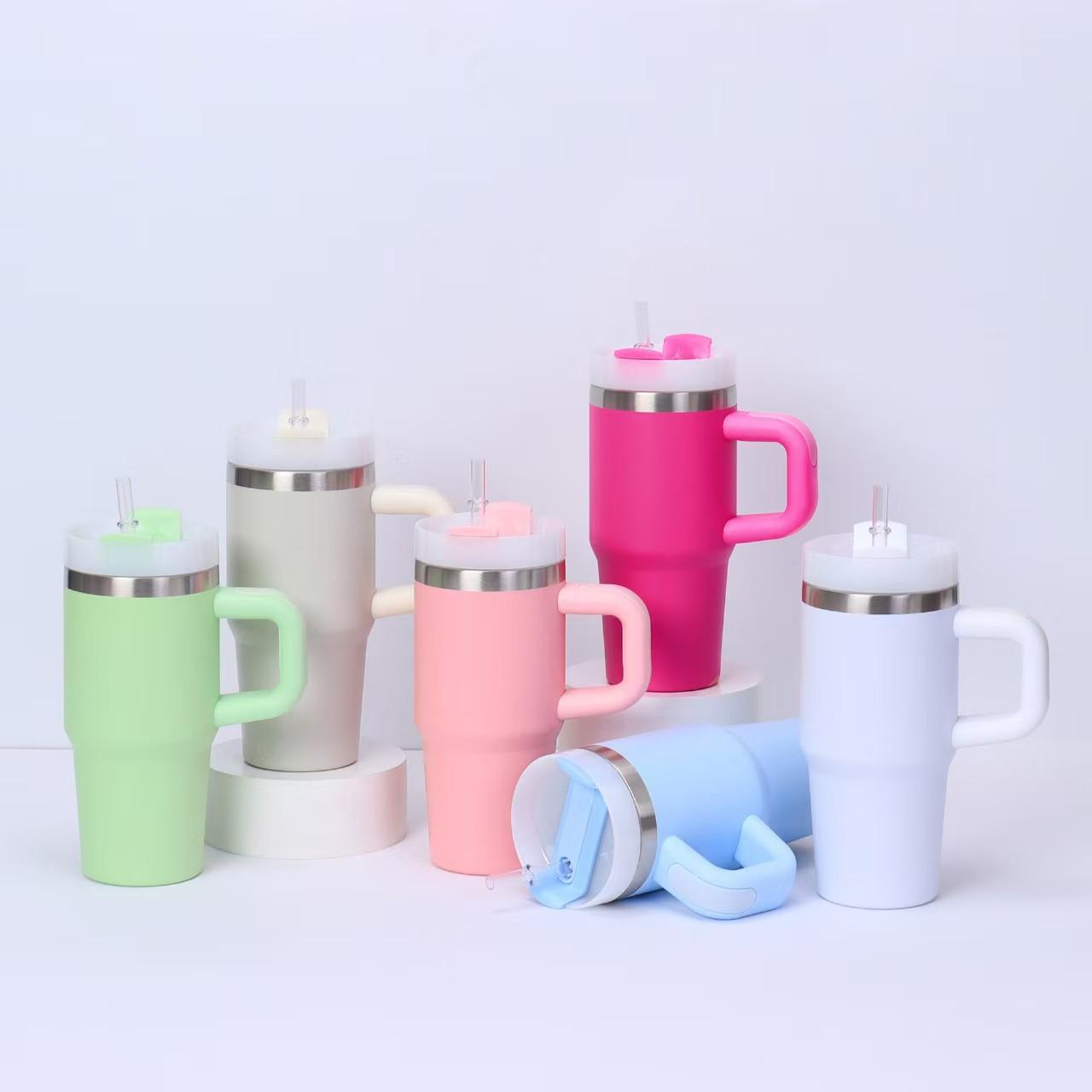 Copo de carro com alça de 14 onças transfronteiriça, novo copo de canudo portátil para carro, copo térmico de aço inoxidável 304
