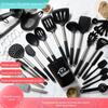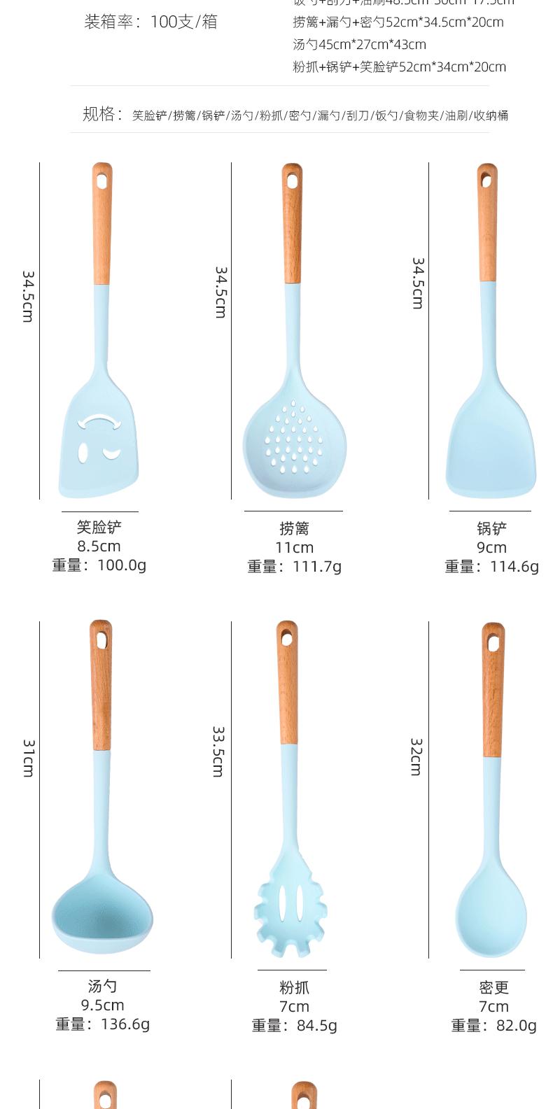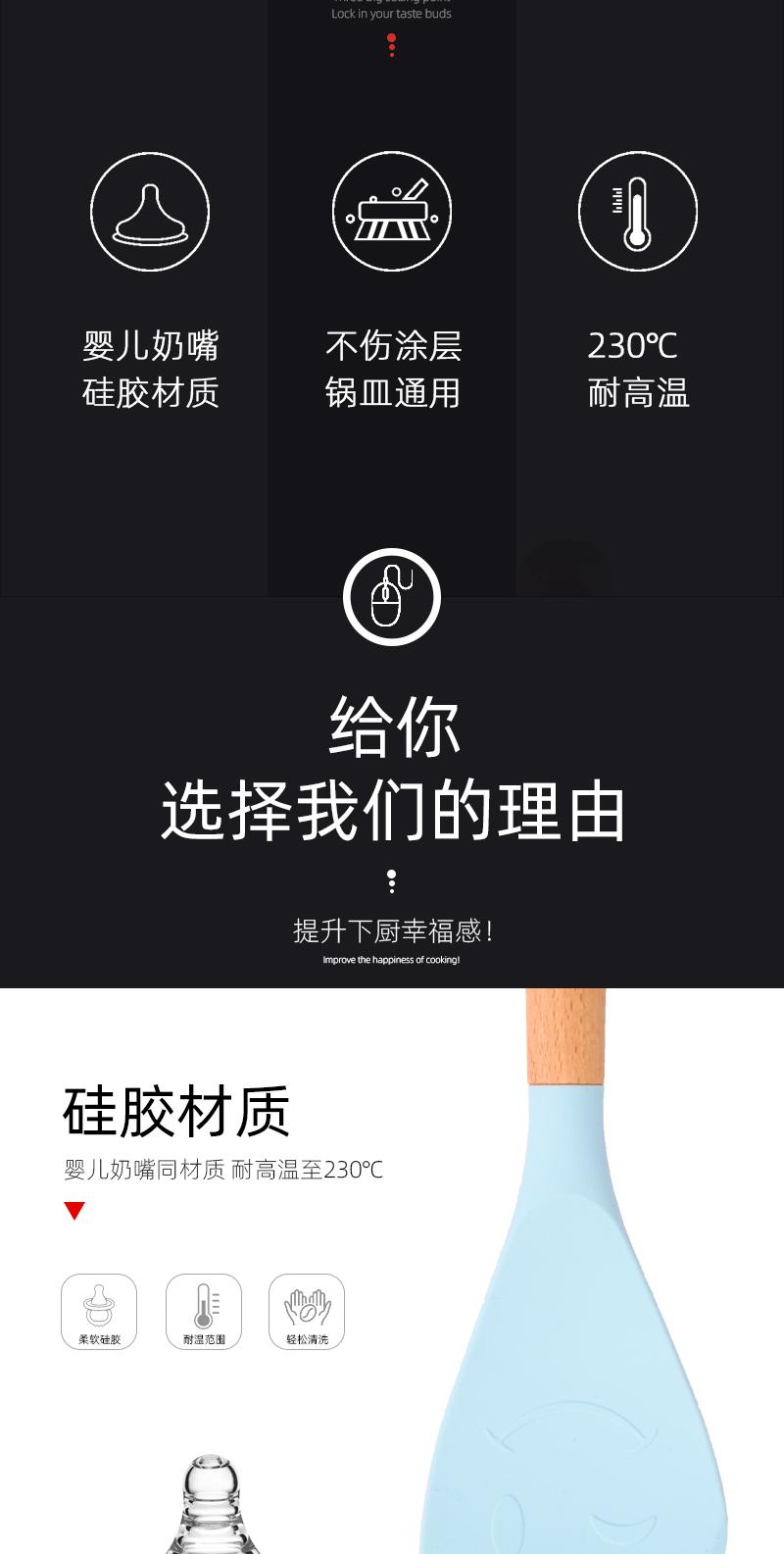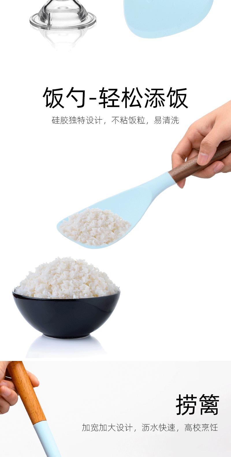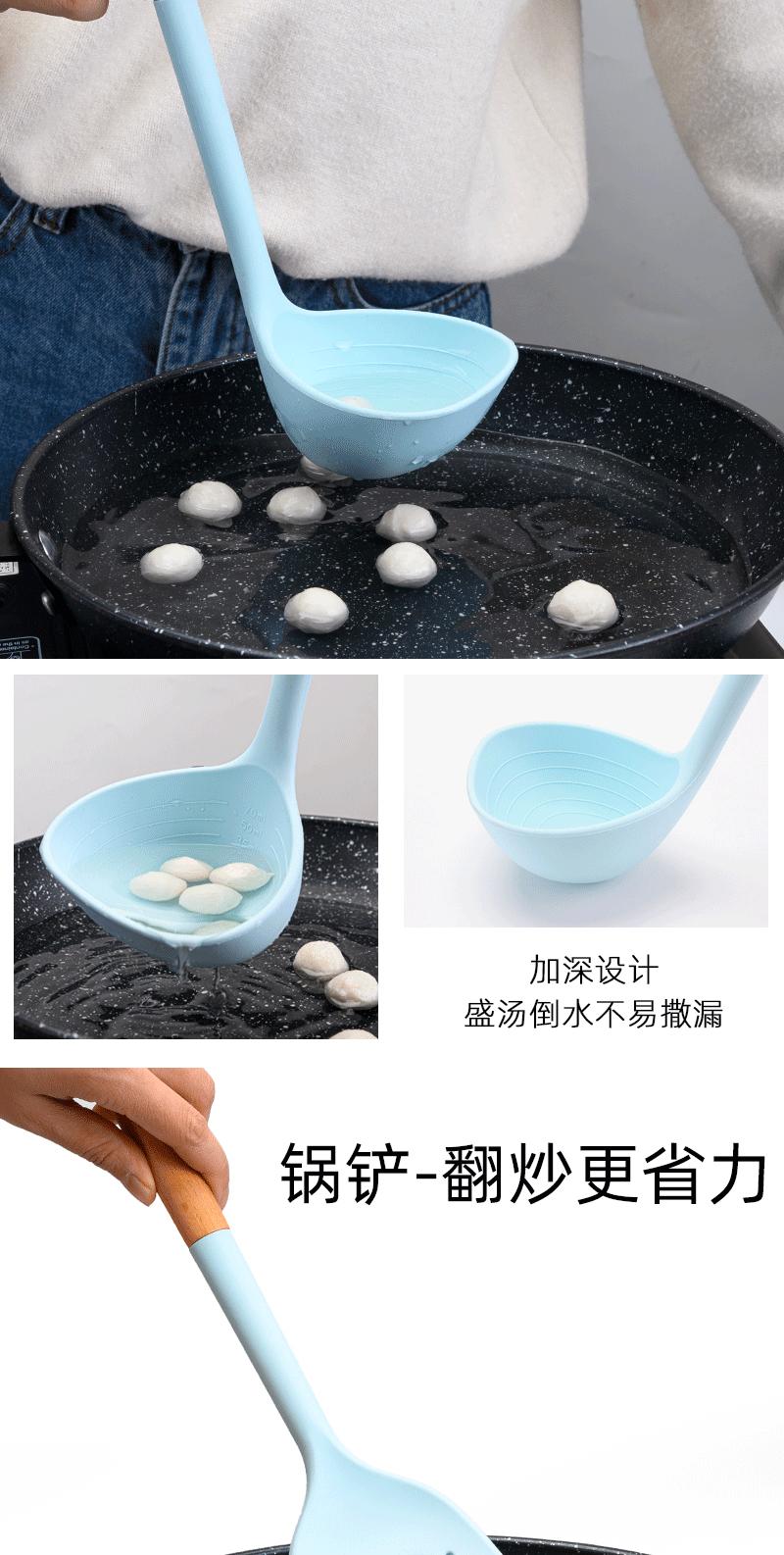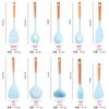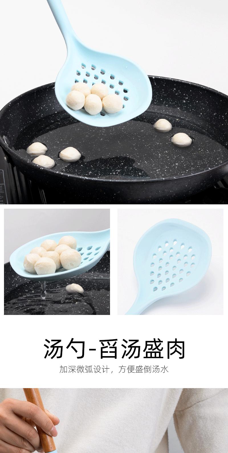 Utensílios de cozinha com cabo de madeira de silicone, espátula de silicone antiaderente de estilo europeu, conjunto de utensílios de cozinha azul e preto resistente a altas temperaturas com 10 peças