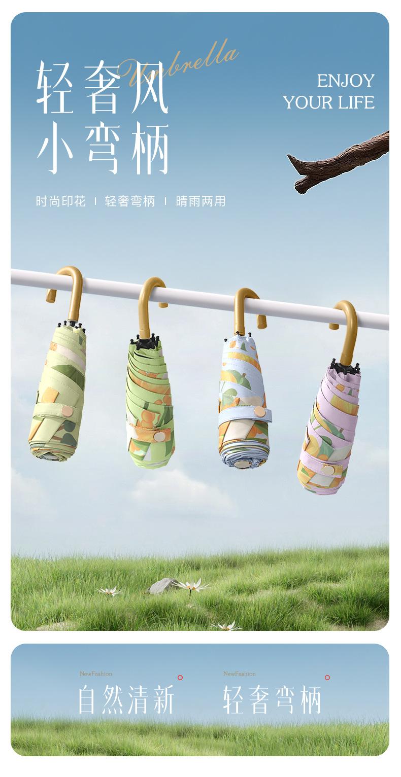 50% Fold 6 Bone Pequeno Gancho Dourado Protetor Solar Mini Guarda-sol Guarda-chuva Pequeno Guarda-sol Leve Dobrável Guarda-sol Atacado