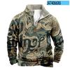 Impressão digital transfronteiriça AliExpress novo outono e inverno masculino manga comprida gola alta meio zíper suéter gola forrado com lã