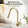 Torneira de cozinha extraível banhada a ouro de latão quente e fria, com misturador de pia de vegetais com furo único