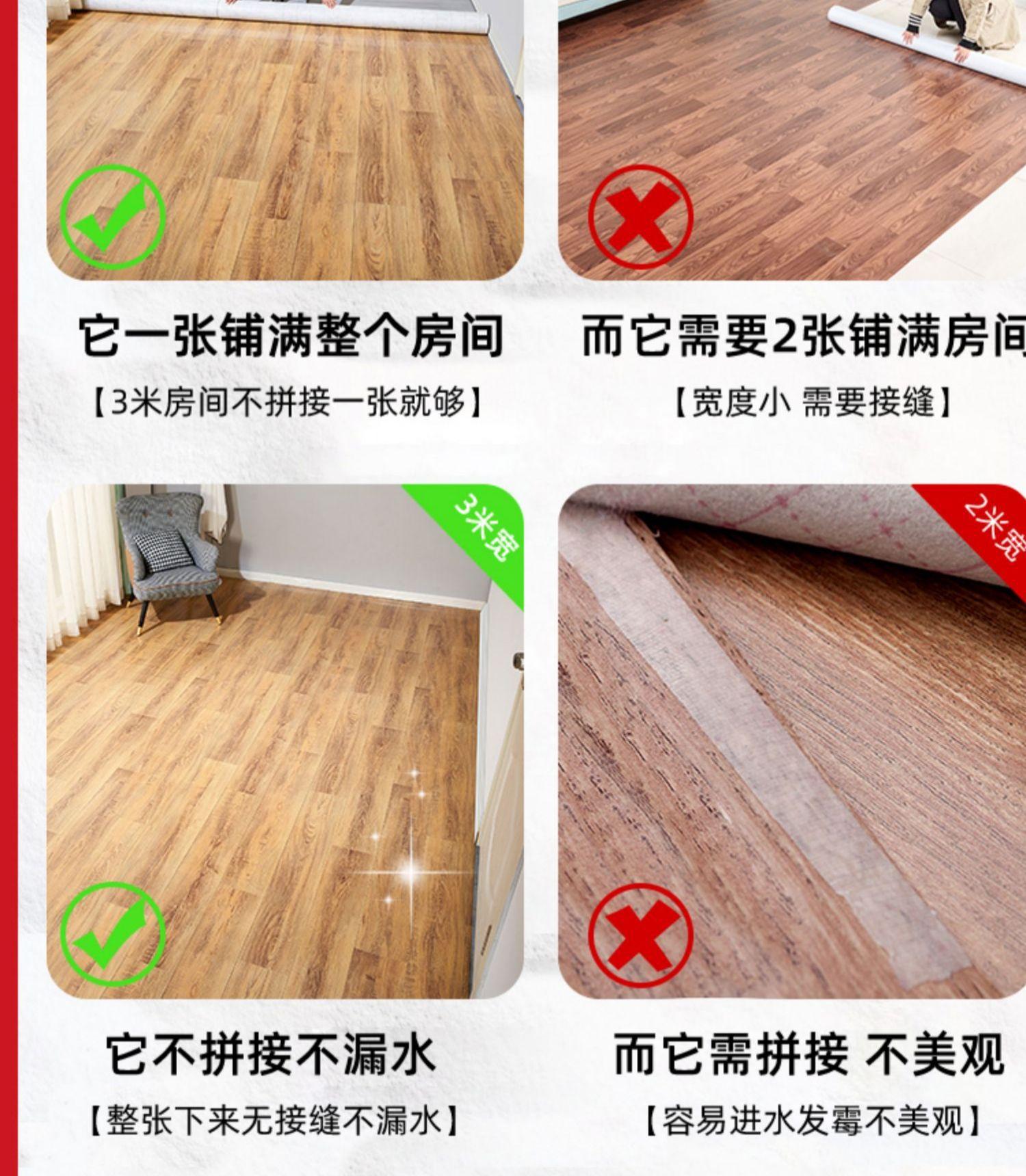 Piso doméstico couro 3 metros de largura piso de cimento diretamente piso comercial almofada de borracha espessada resistente ao desgaste adesivos de piso de PVC