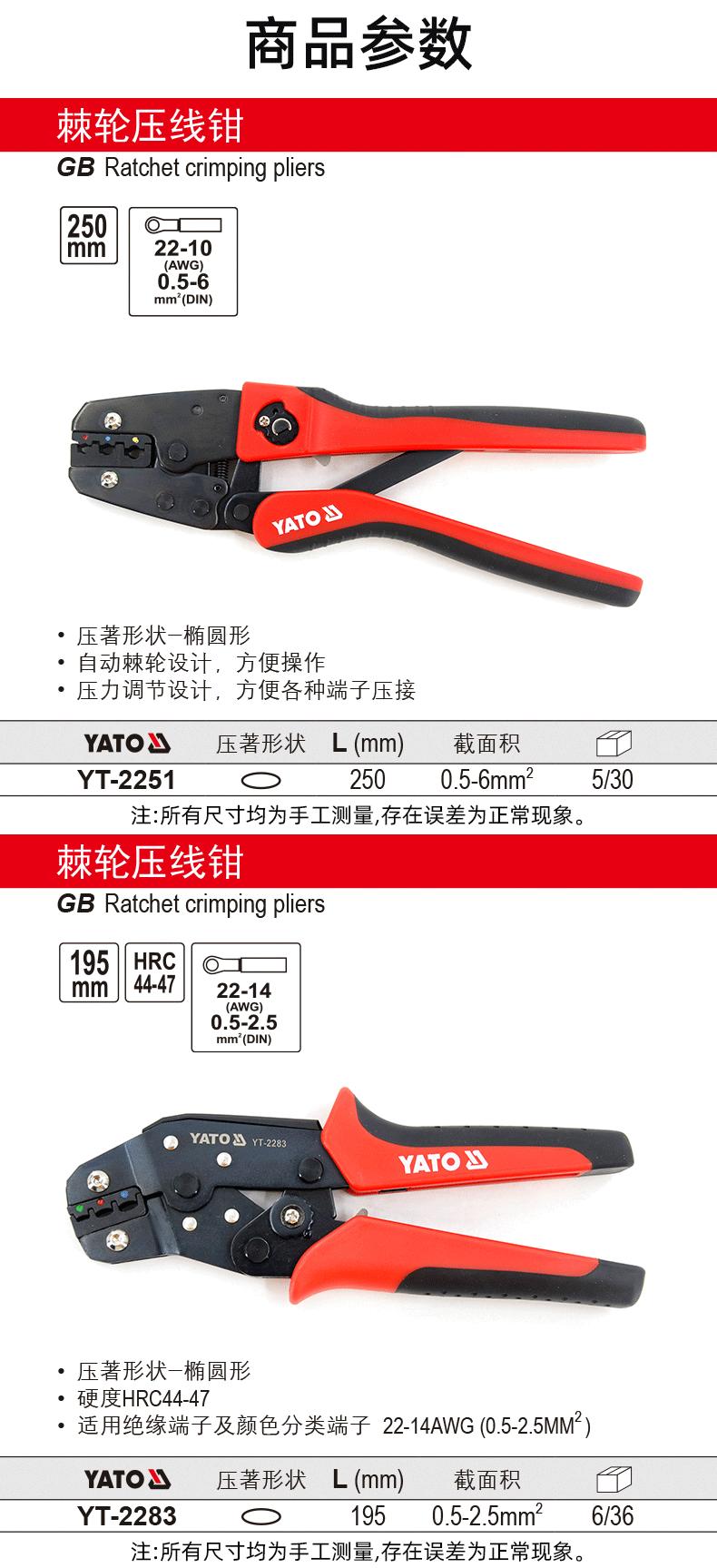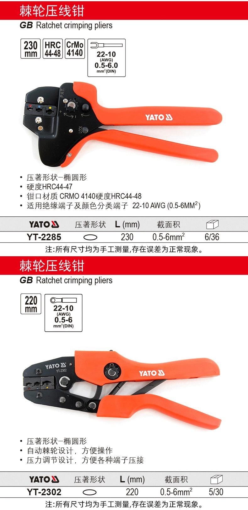 Domestic 0.5-2.5 mm2 195mm YT-2307, Taiwan Imports 0.5-6.0 mm2 220mm YT-2251