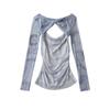 Estação Europeia Sexy Roupas Femininas Comércio Exterior Verão Novo Gola Redonda Estampa de Leopardo Malha Perspectiva Manga Longa Camiseta Top
