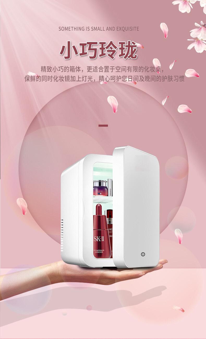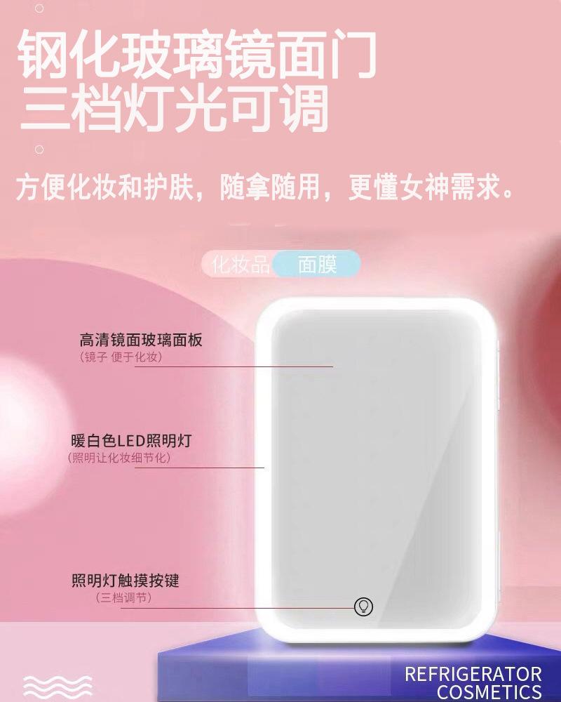 Novo produto no mercado! Espelho + refrigerador de cuidados com a pele com luz LED, refrigerador eletrônico semicondutor para manter alimentos frescos quentes e frios. Vem com espelho de maquiagem e luz LED, três níveis de luz, livre para ajustar de acordo com as necessidades. Integra armazenamento de refrigeração e maquiagem, entende melhor as necessidades das deusas