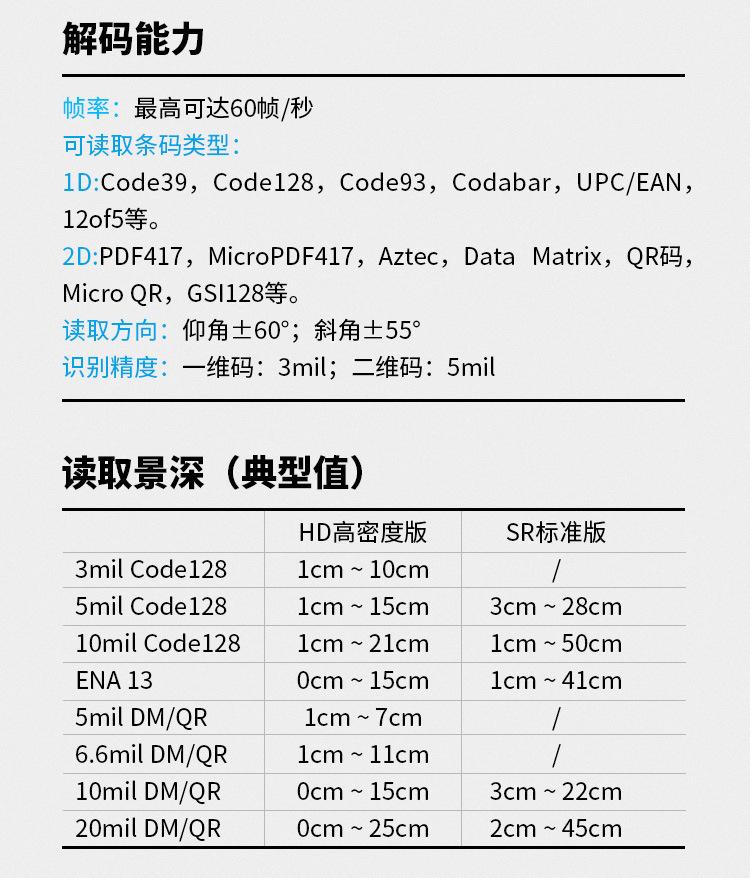 HS200 wired two-dimensional scanning gun (white light), HS200-0510 wired two-dimensional scanning gun (red lig...