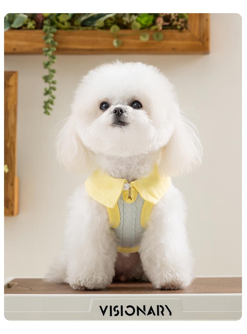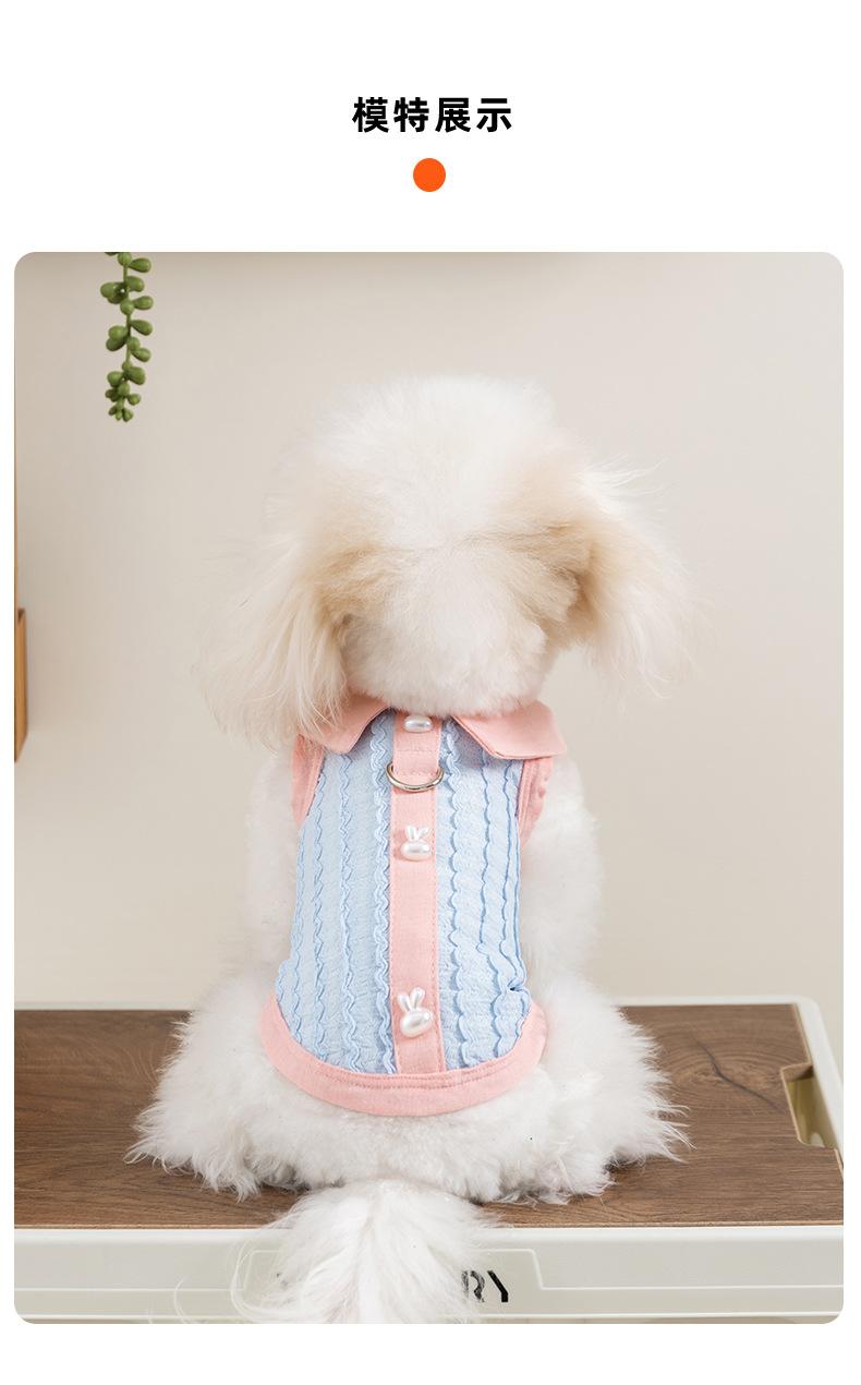 Roupas para cães de primavera e verão, gola polo de malha jacquard, colete de tração, tipoia fina, roupas de pelúcia para animais de estimação de cachorro pequeno