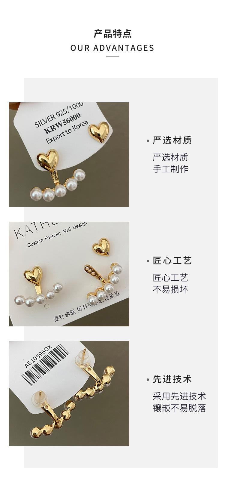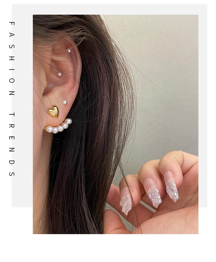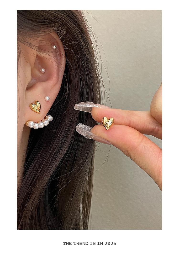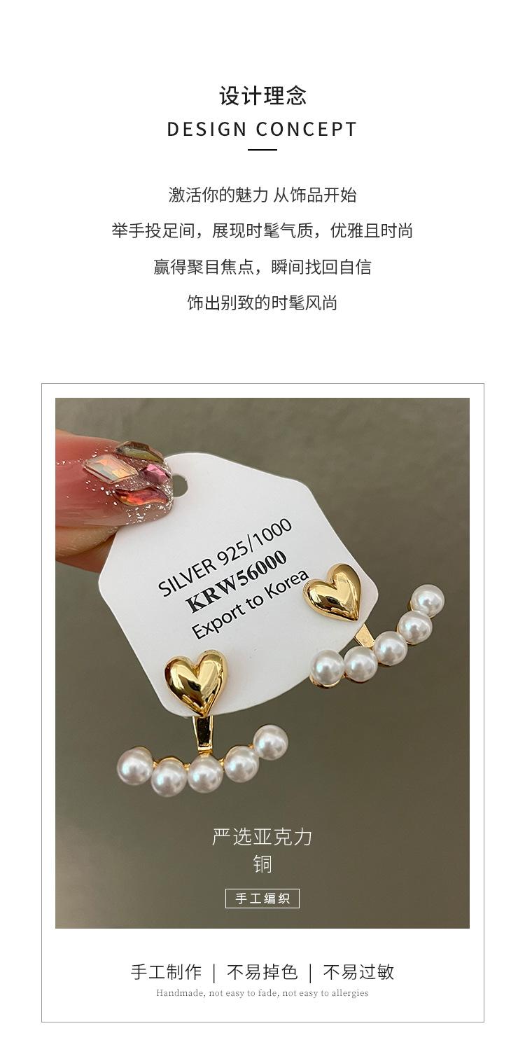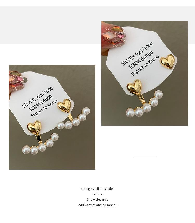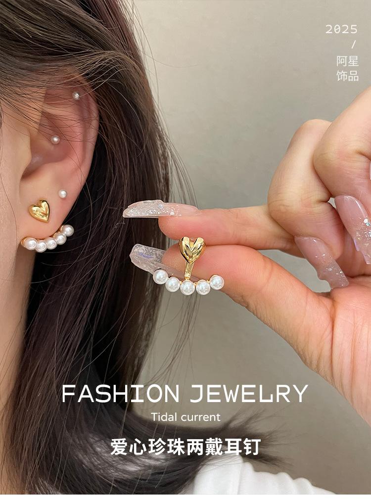 S925 Prata Agulha Brincos Coreanos Atacado Amor Pérola Dois Brincos Simples Nicho Temperamento Personalidade Novos Brincos