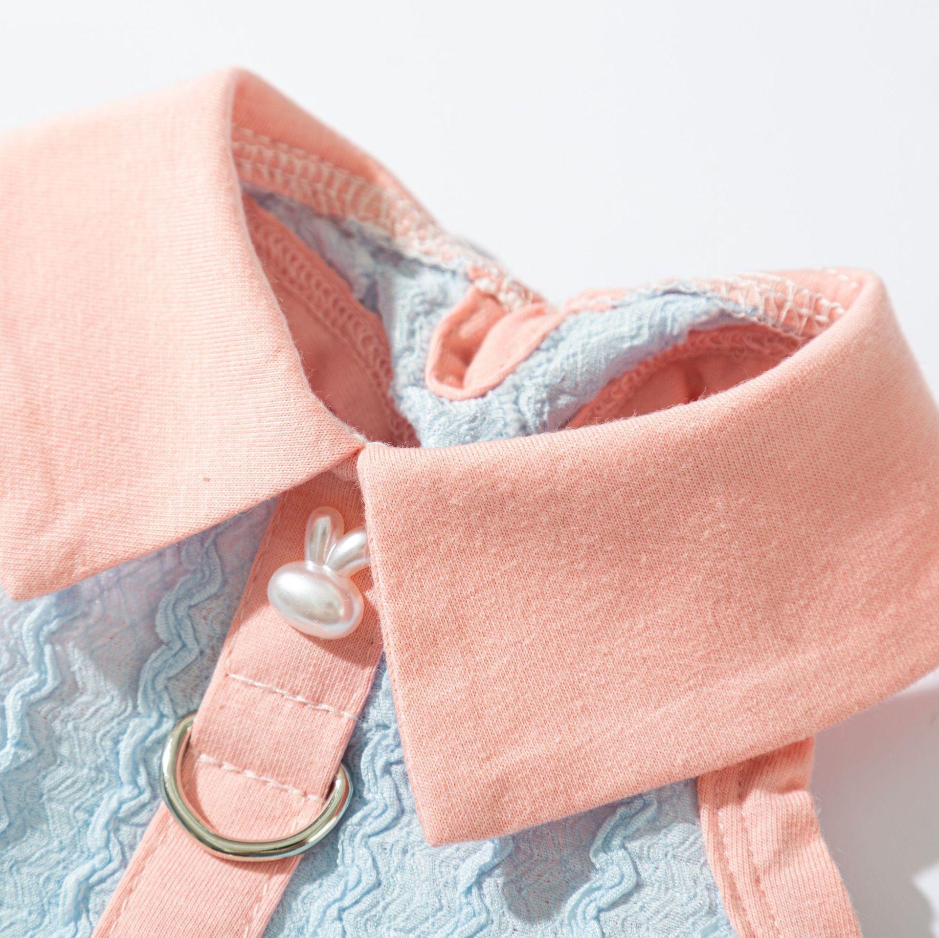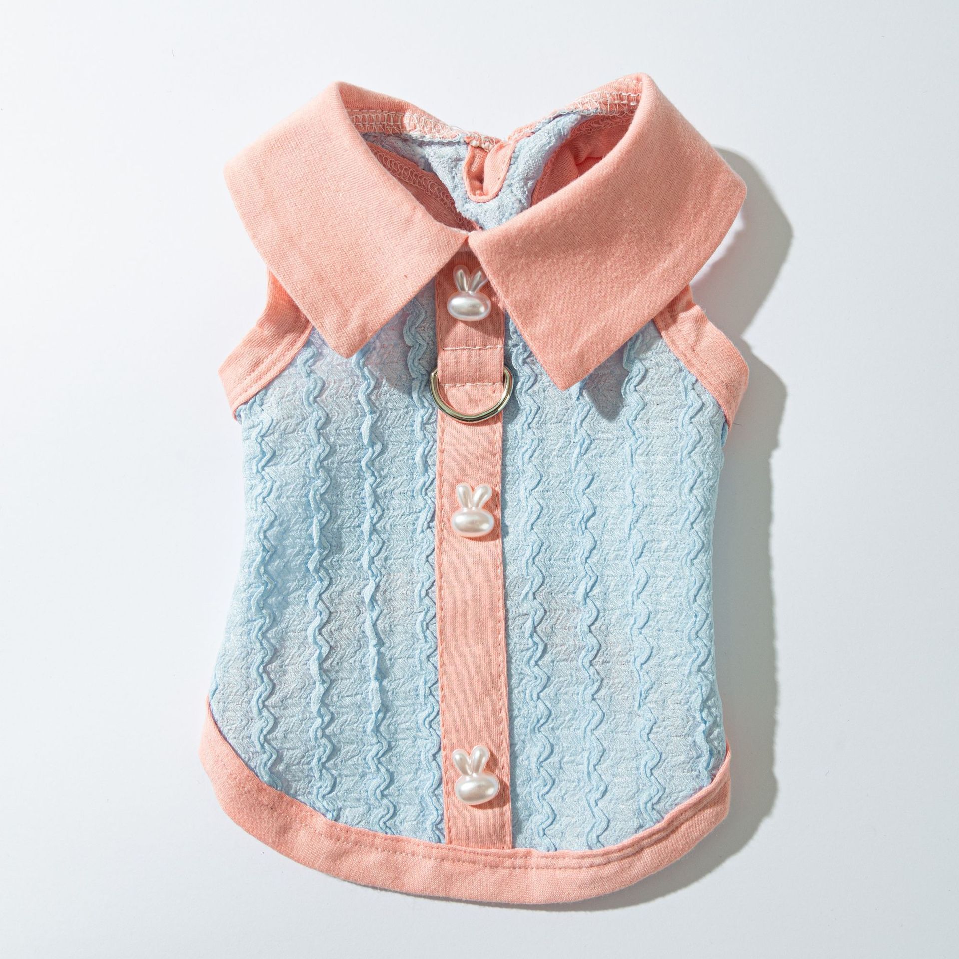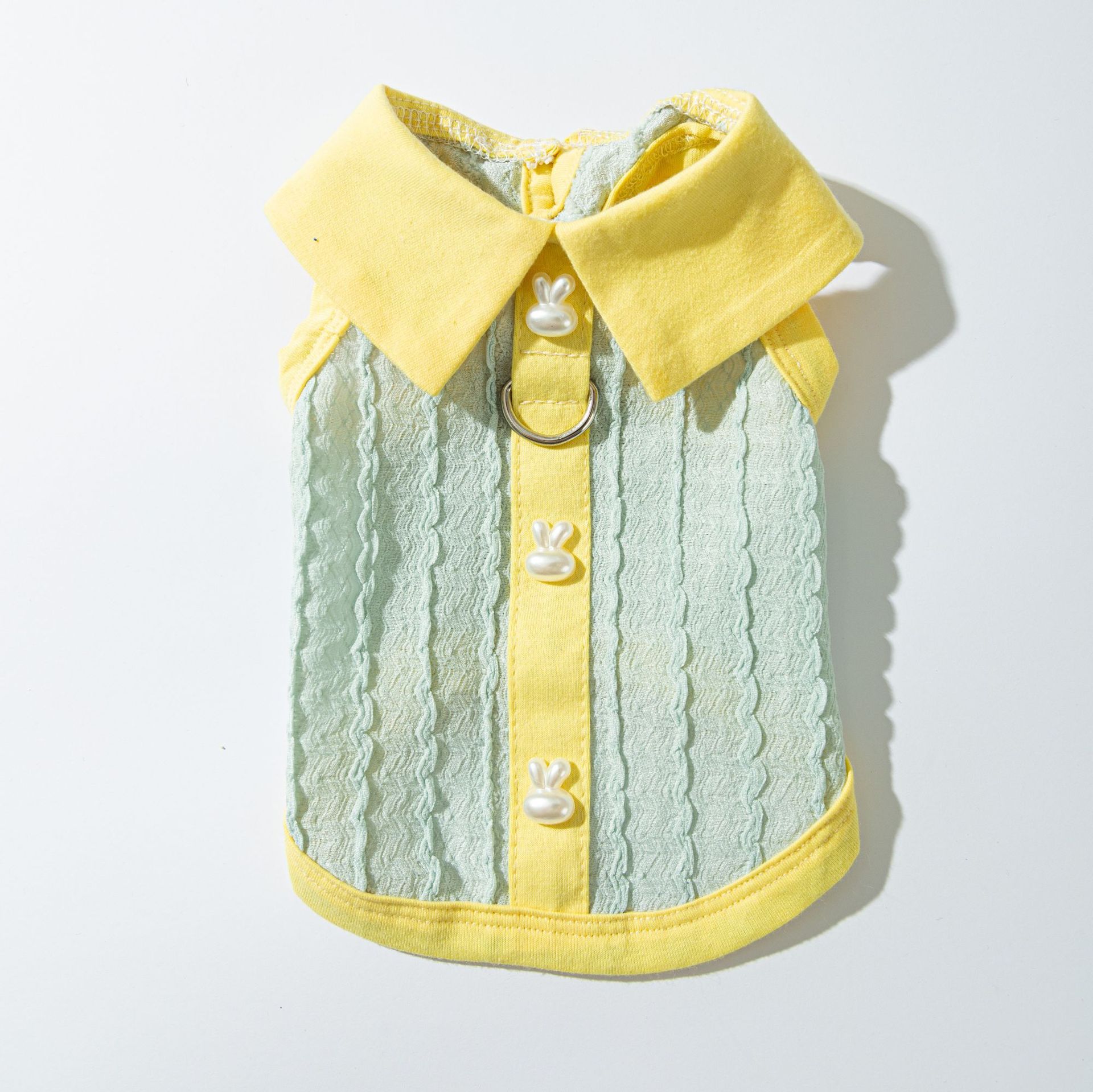 Roupas de Primavera e Verão para Cães de Estimação Teddy de Duas Pernas Respirável Recortado Listrado Camisa Polo Colete de Tração Urso