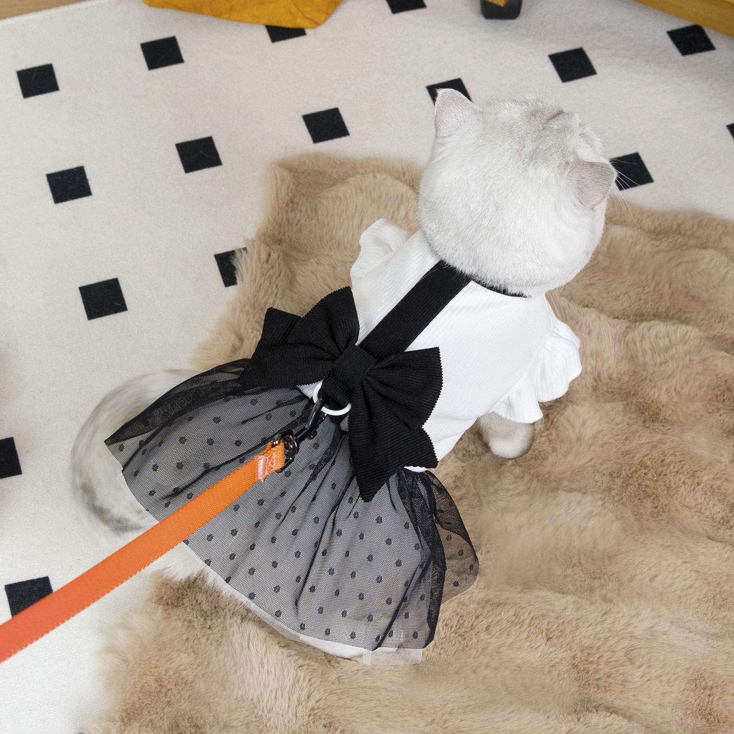 Vestido de Cachorro de Estimação Vestido de Casal Primavera e Verão Ins Gato Bixiong Teddy Colete Colete Preto Tração Vestido de Estimação