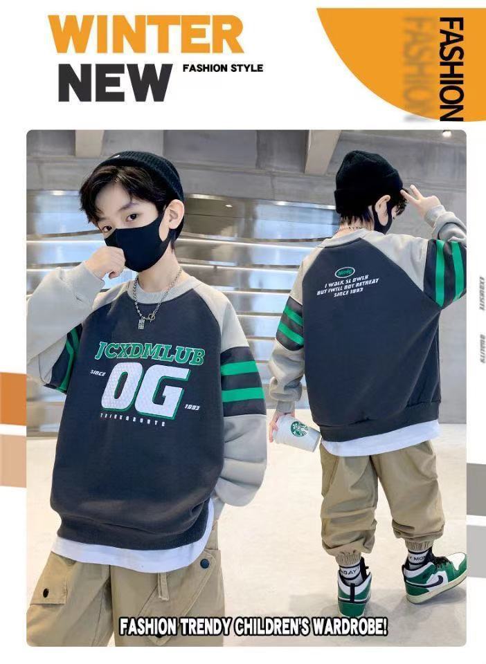 Compre Meninos primavera e outono algodão gola redonda pulôver suéter 2023 infantil manga longa coreano menino jaqueta atacado no atacado no Joom.pro