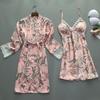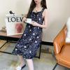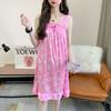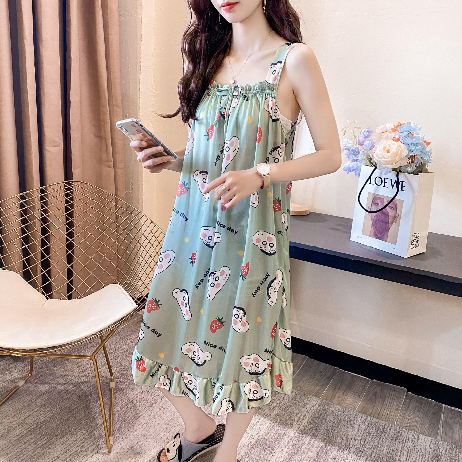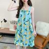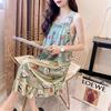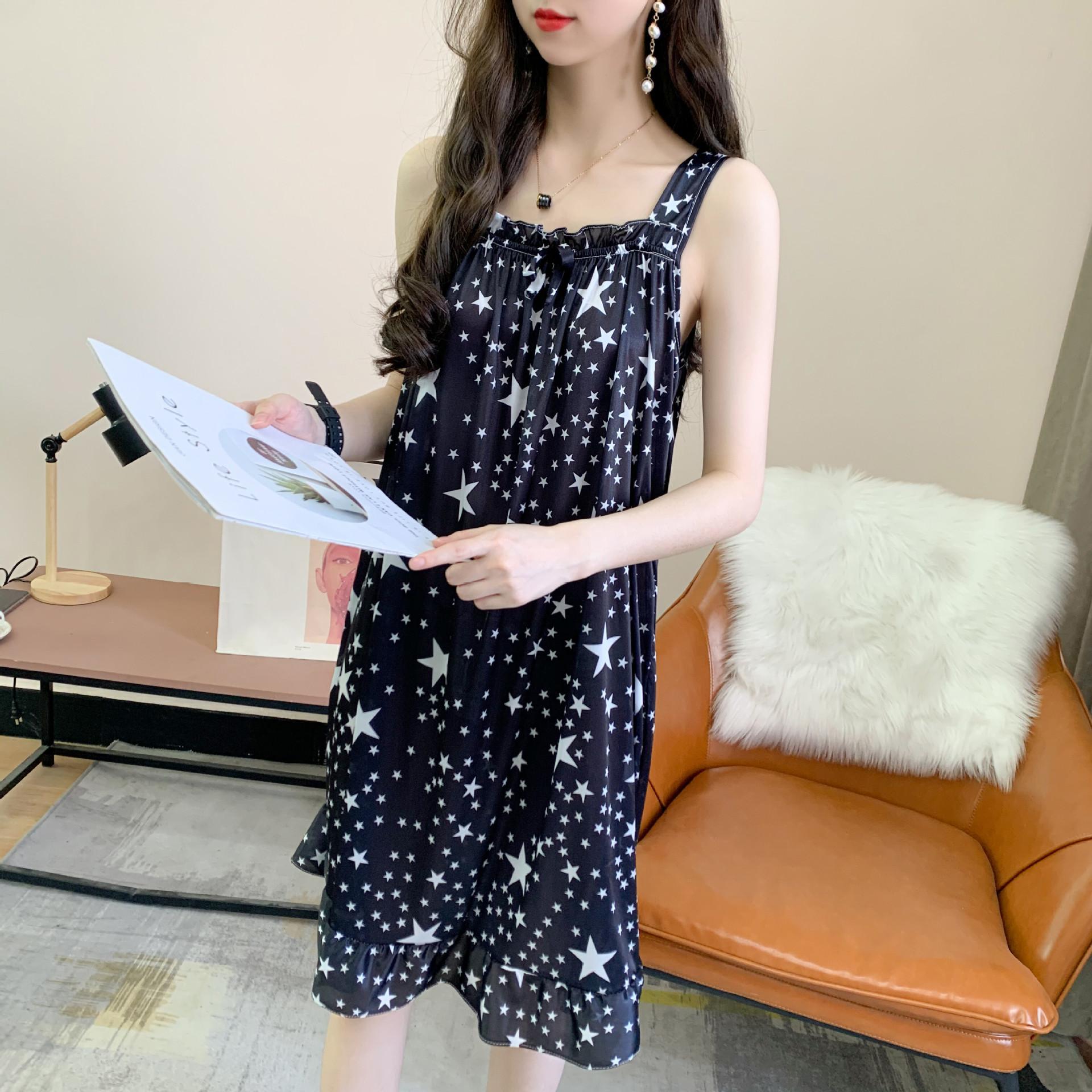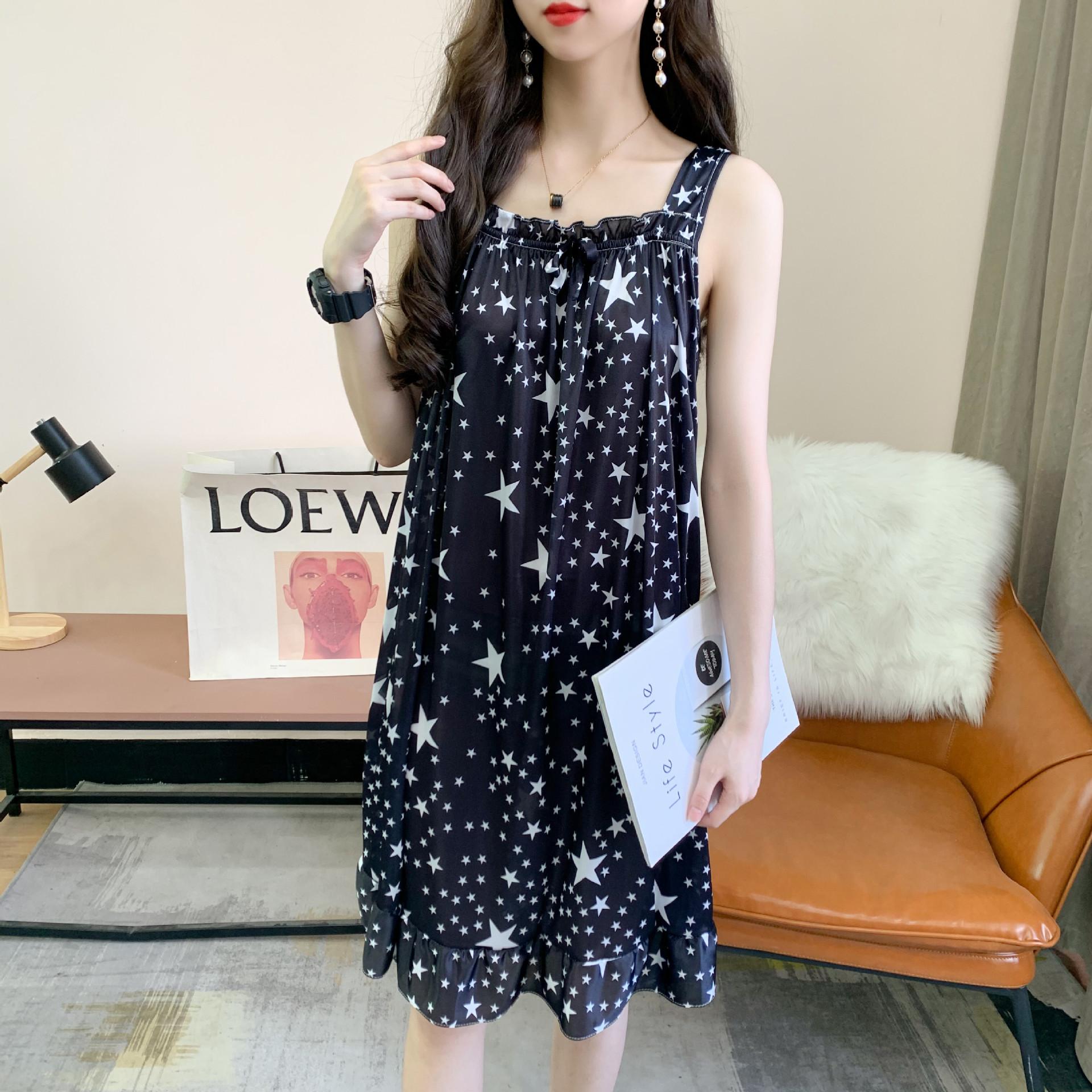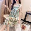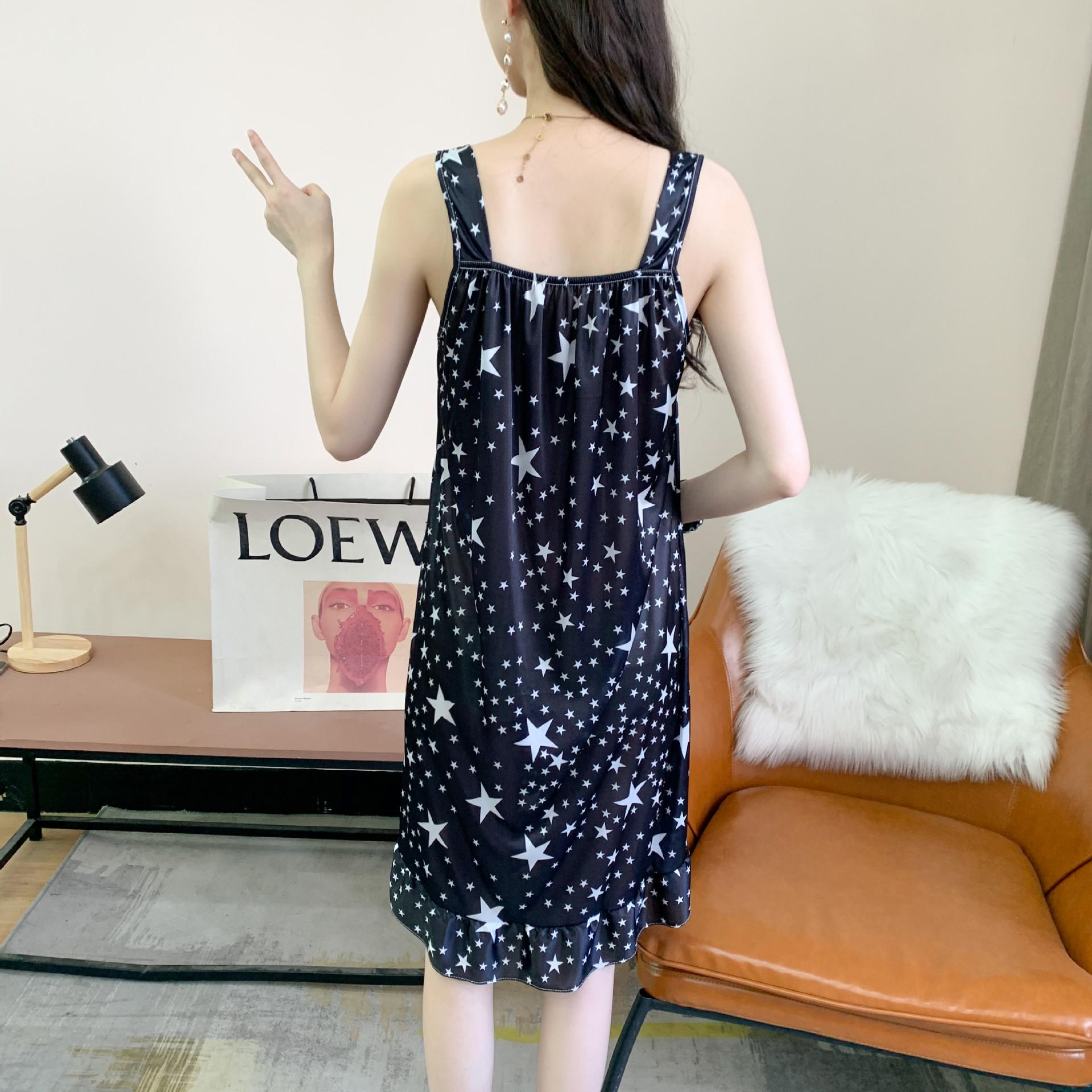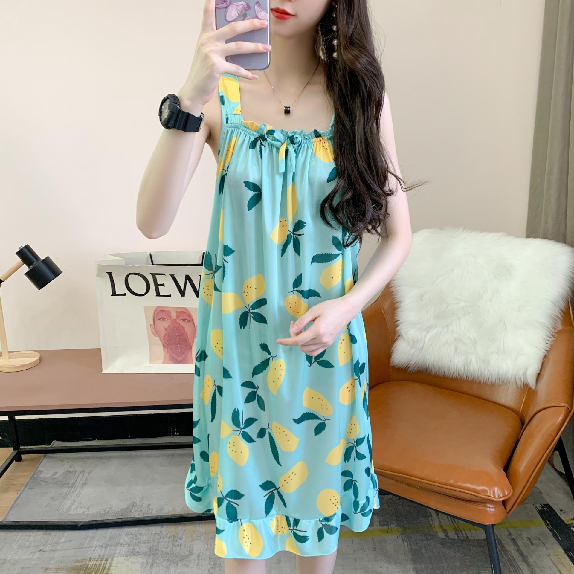 Camisola sem mangas com alças, pijama feminino de seda gelada de verão, sexy, estampado fino, moda solta, tamanho grande, roupas para casa, atacado