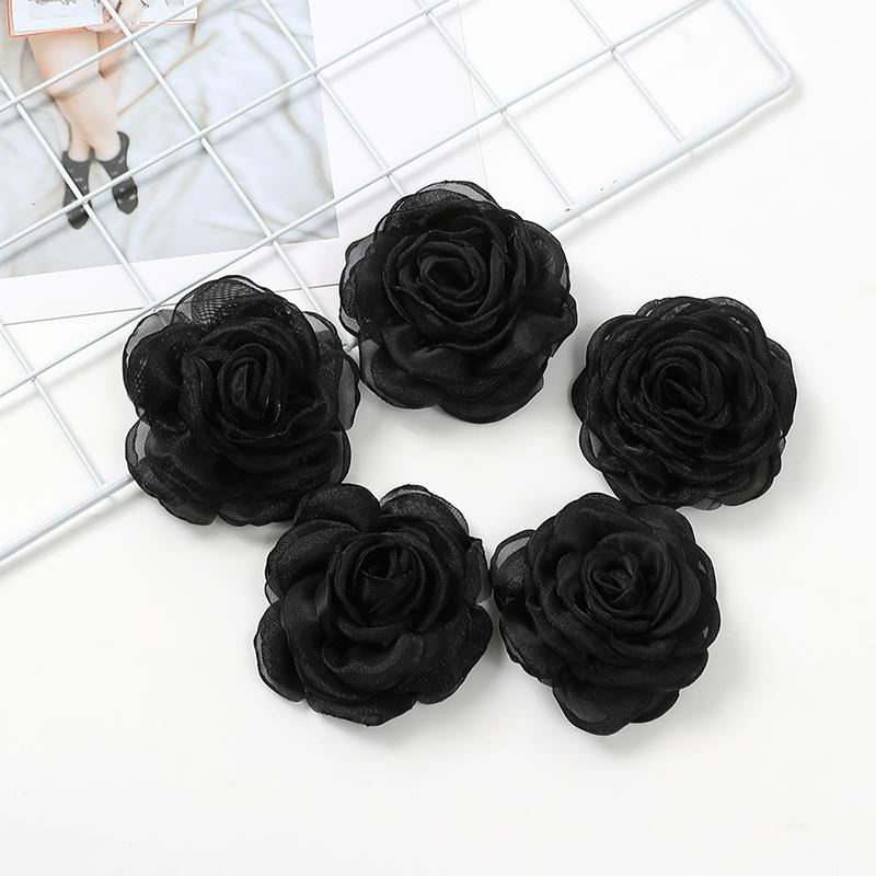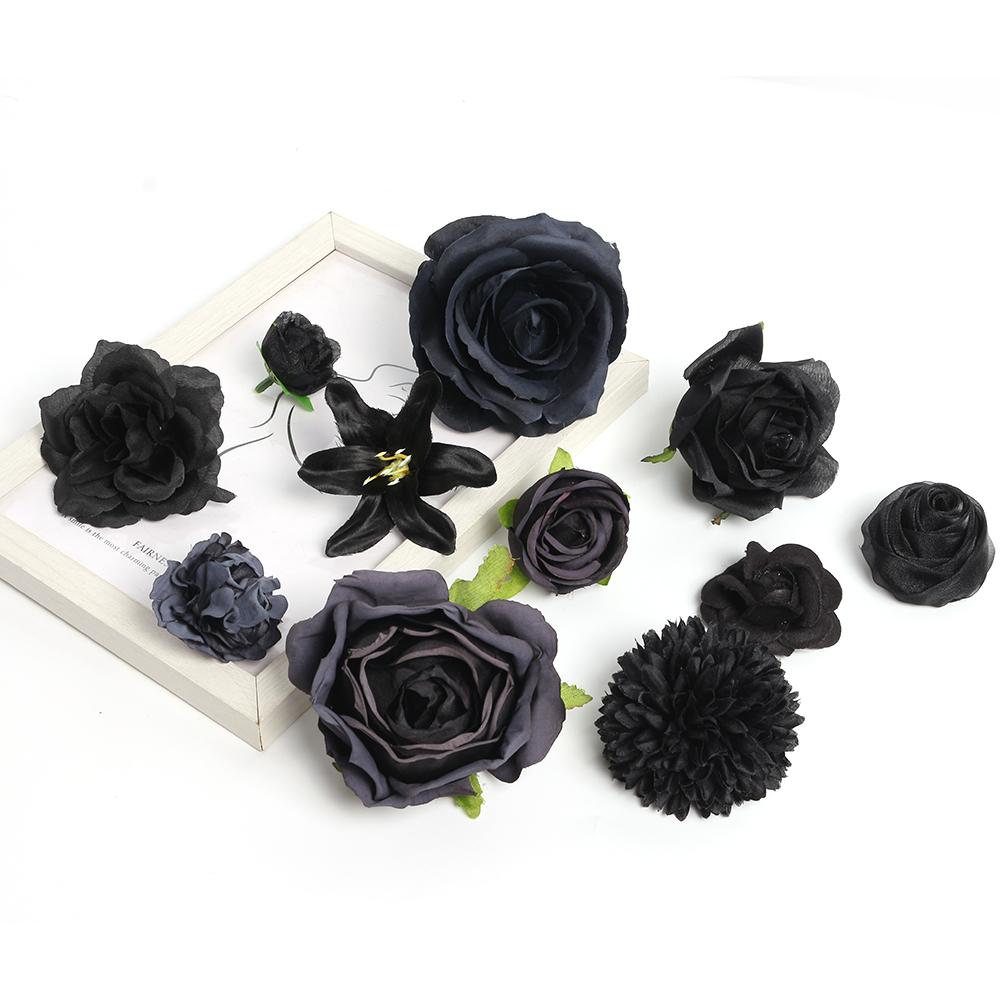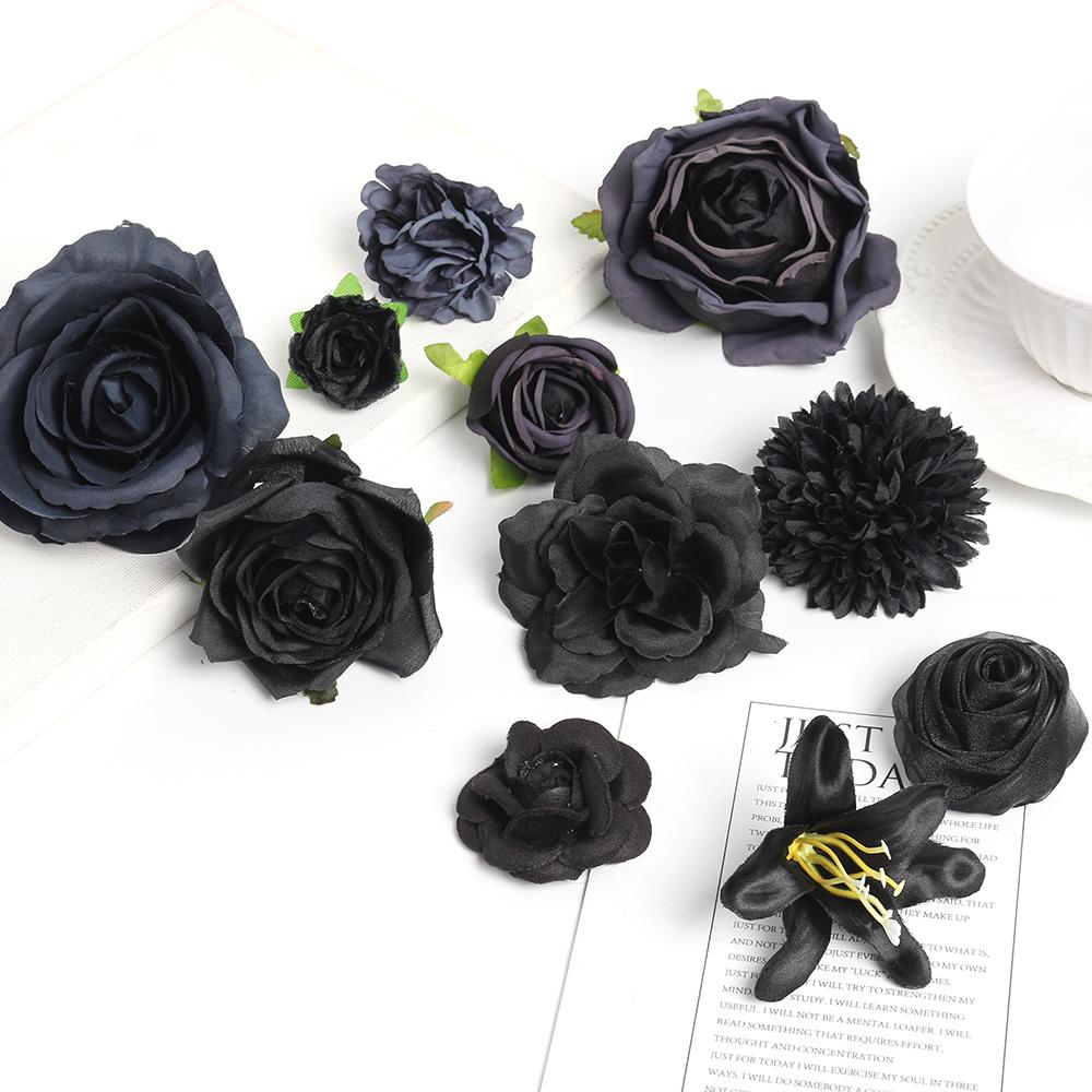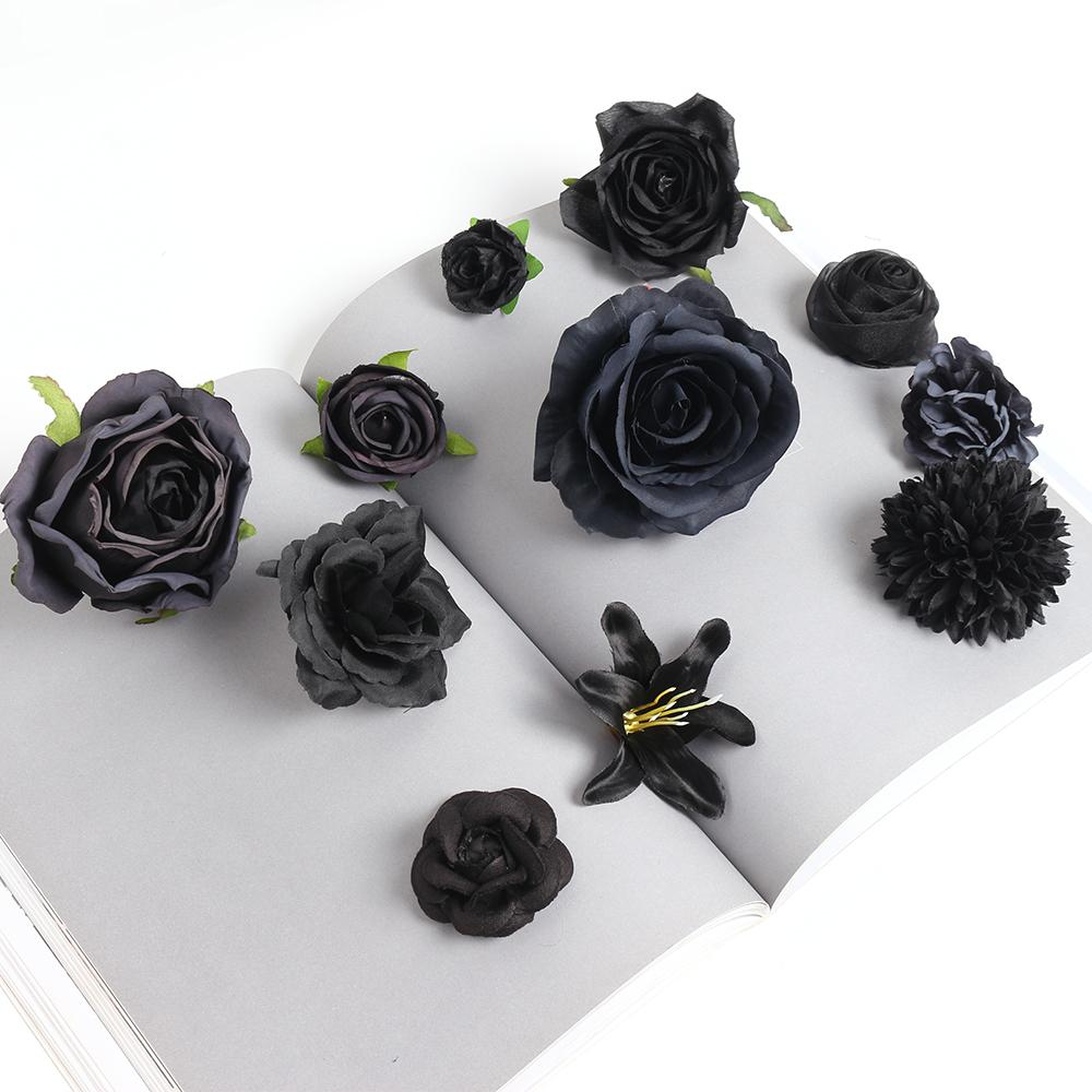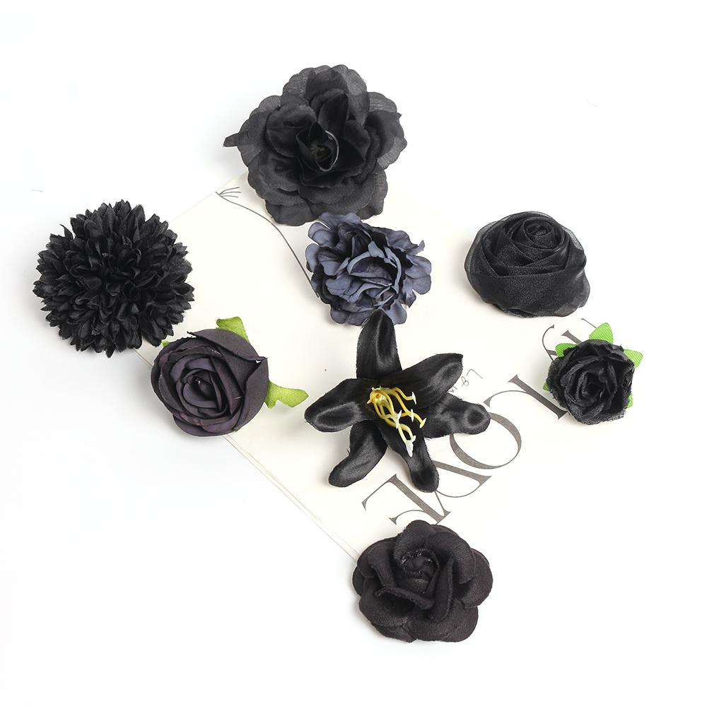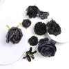 Cabeça de flor preta flor artificial flor de seda faça você mesmo material de guirlanda flor de casamento decoração de parede grampo de cabelo acessórios de roupas