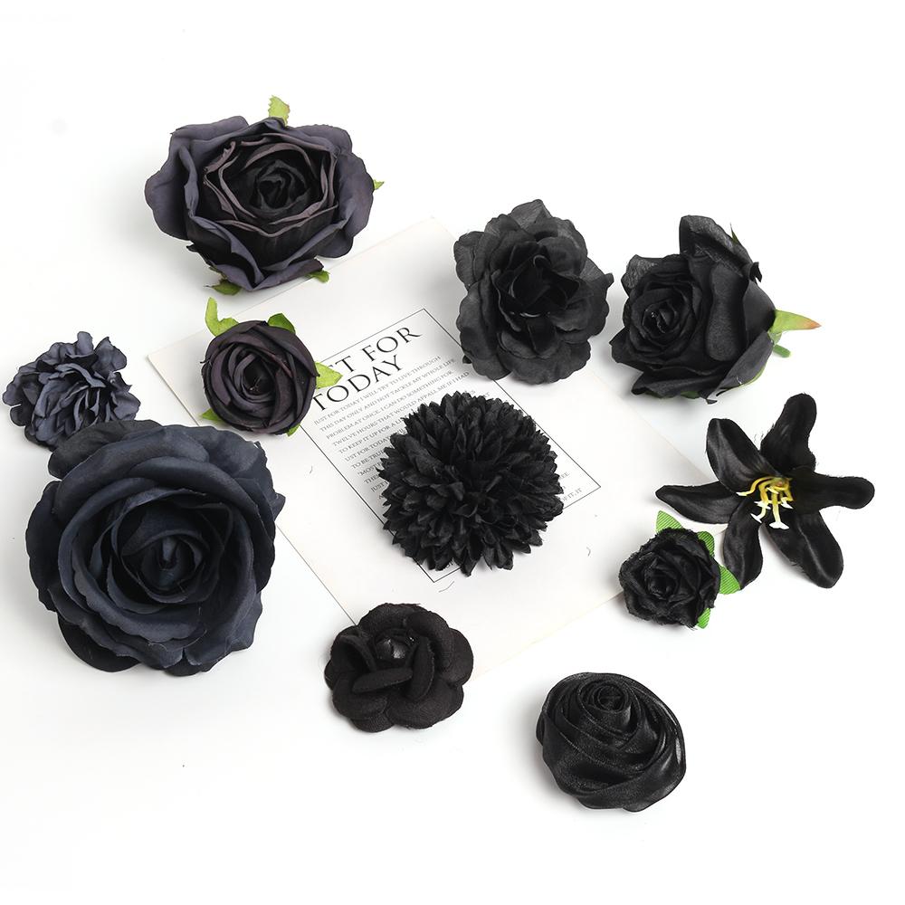 Compre Cabeça de flor preta flor artificial flor de seda faça você mesmo material de guirlanda flor de casamento decoração de parede grampo de cabelo acessórios de roupas no atacado no Joom.pro