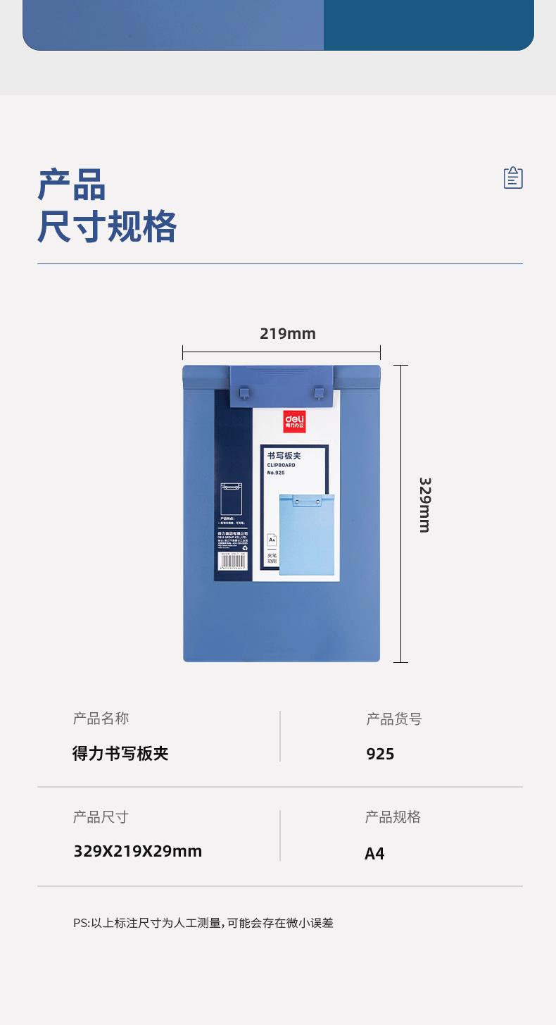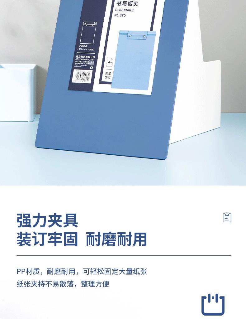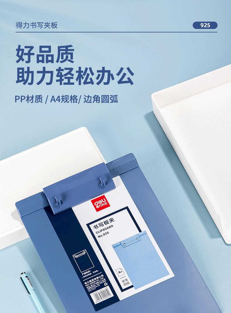 Deli 925 placa clipe A4 placa de escrita clipe de plástico placa de escrita placa de escrita pasta tala atacado