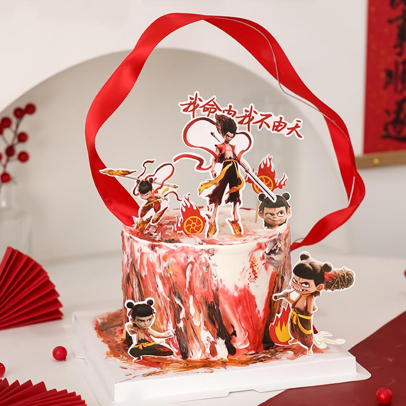 Compre Decoração de bolo vermelho líquido menino mágico três príncipe cartão hot wheels feliz aniversário festa bolo decoração plug-in no atacado no Joom.pro