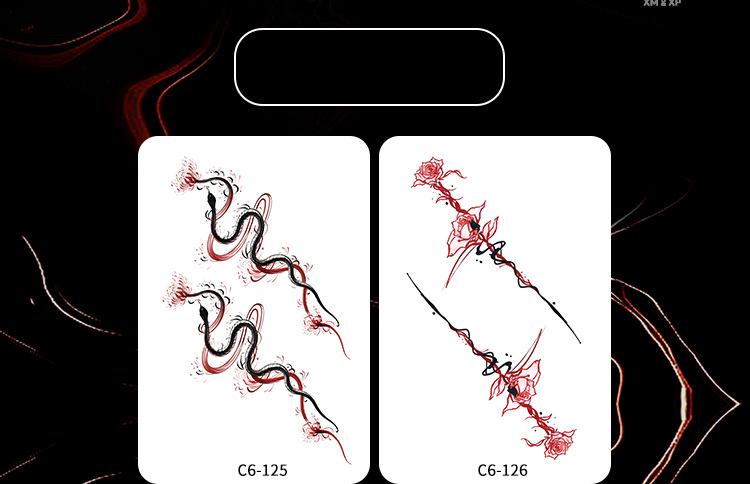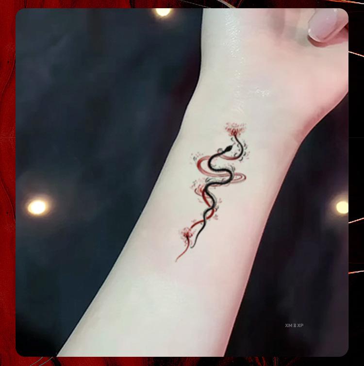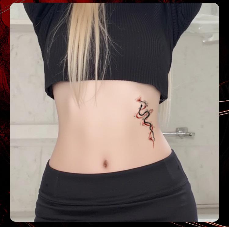 Tatuagem de cobra com flor de ameixa Guofeng, tatuagem feminina à prova d'água, duradoura, para braço, costas, sexy, cintura, cobrindo cicatriz, tinta colorida