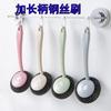 Escova de cozinha Pot Artefato Doméstico Long Handle Escova de Lavagem Pot Aço Inoxidável Escova de Arame Descontaminação Escova de Limpeza Escova de Aço Wire Ball Brush