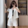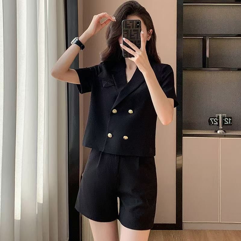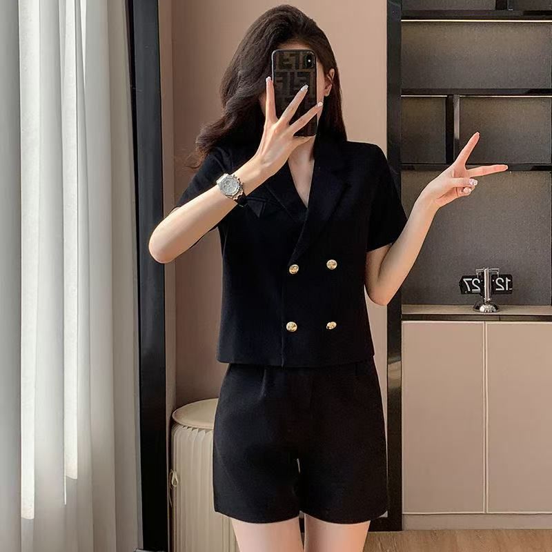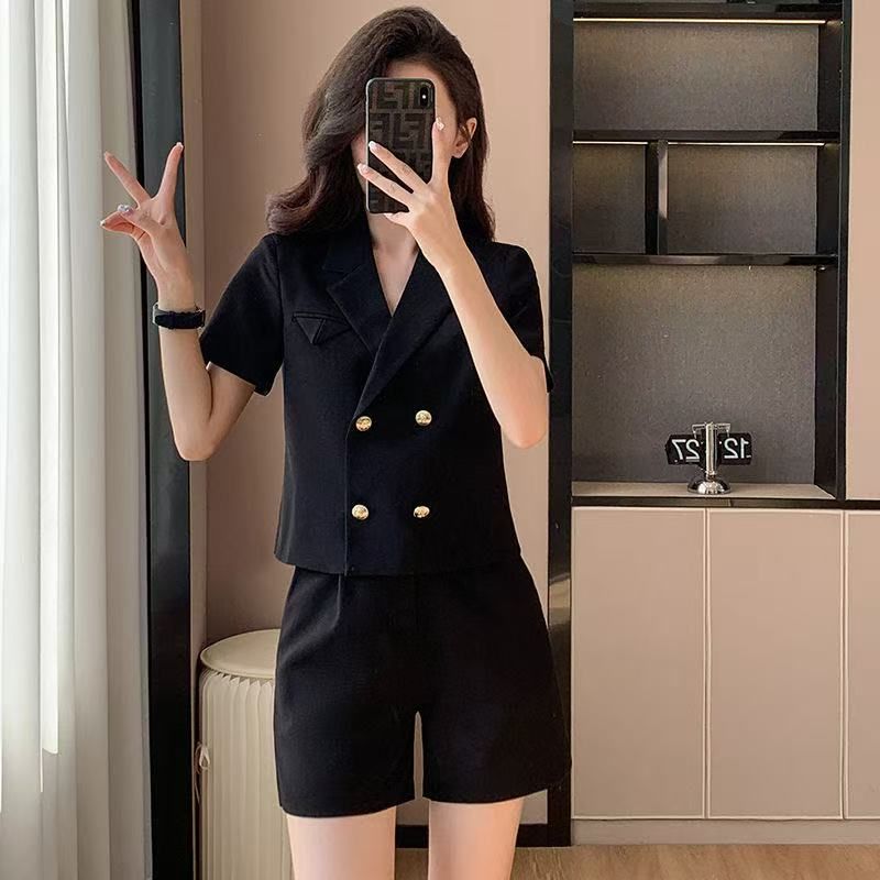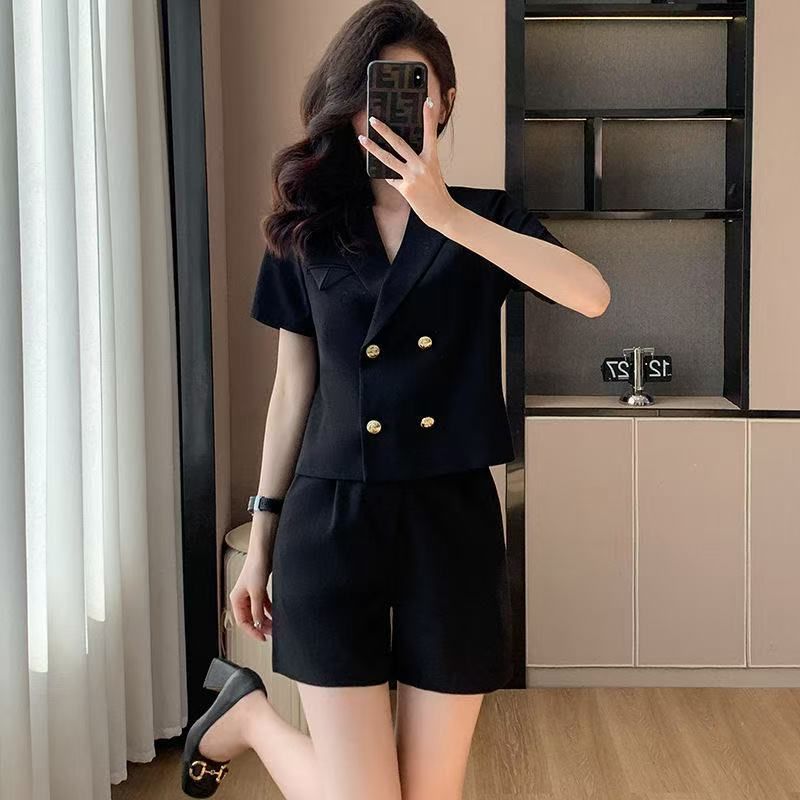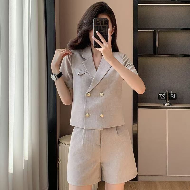 Terno curto jaqueta pequena fina 2025 verão novo terno profissional calças largas terno feminino moderno