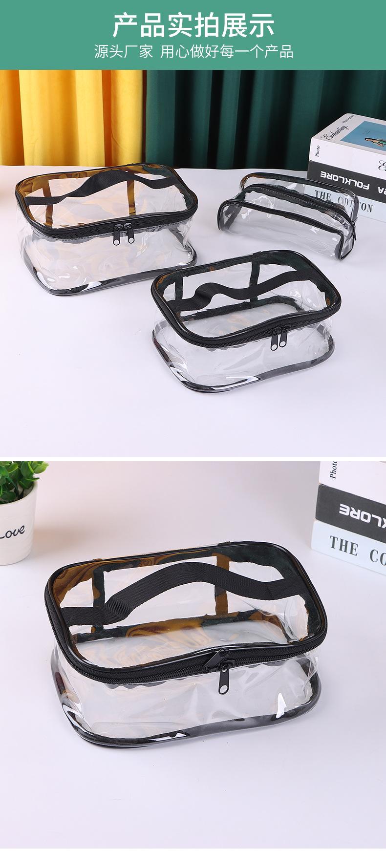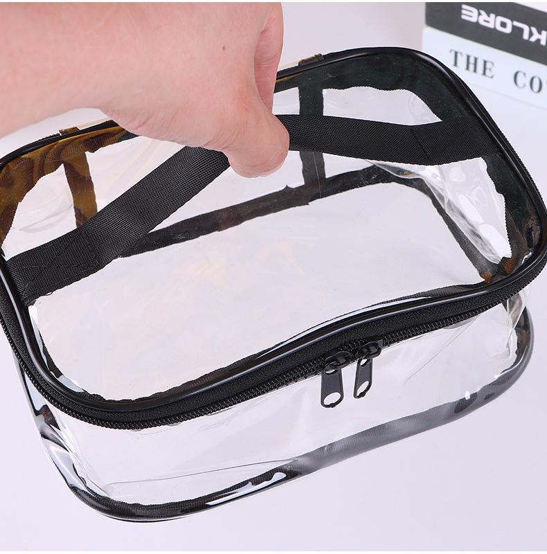 Bolsa de cosméticos de PVC transparente à prova d'água portátil para viagem, bolsa de armazenamento e lavagem, bolsa de embalagem com zíper portátil de plástico multifuncional