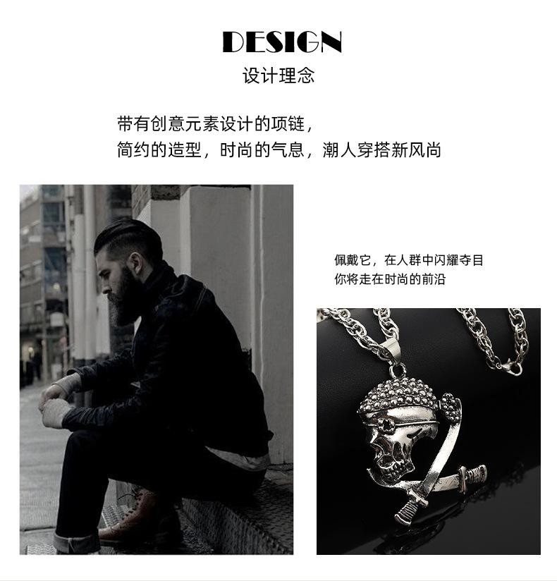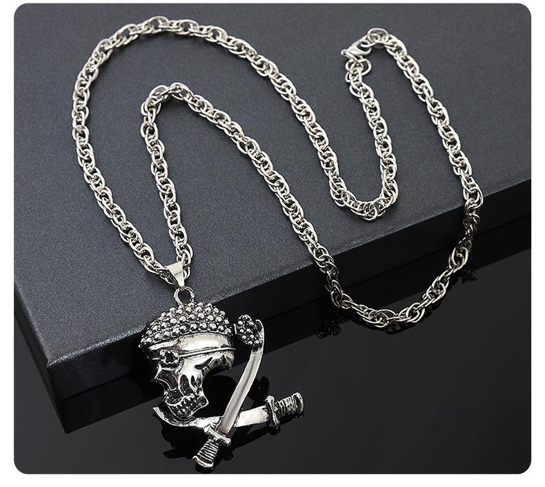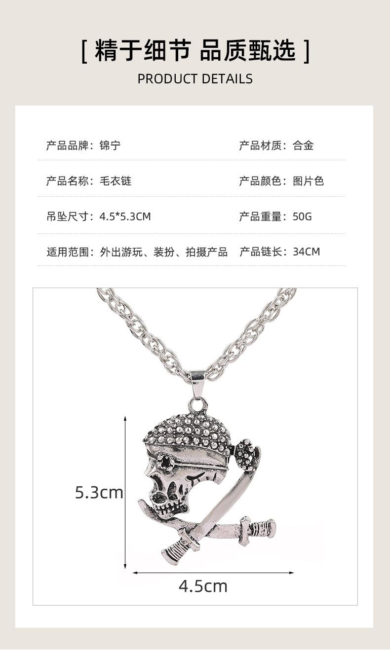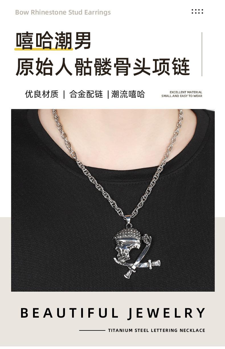 Colar de caveira estilo europeu e americano mais vendido internacionalmente, colar masculino com pingente de corrente de lã da moda hip-hop, acessórios para colar