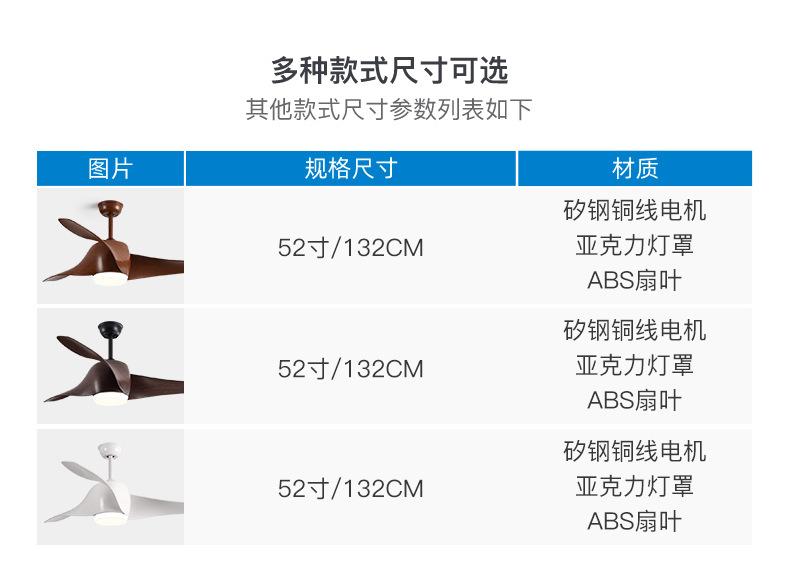 Lâmpada de ventilador nórdico transfronteiriça Sala de jantar doméstica Sala de estar Quarto Lâmpada de ventilador de teto Americano Simples Conversão de frequência Ventilador integrado Lustre