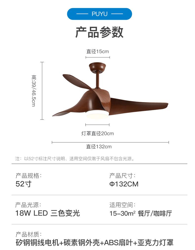 Dark walnut color 52inch (132cm)+variable frequency remote control