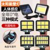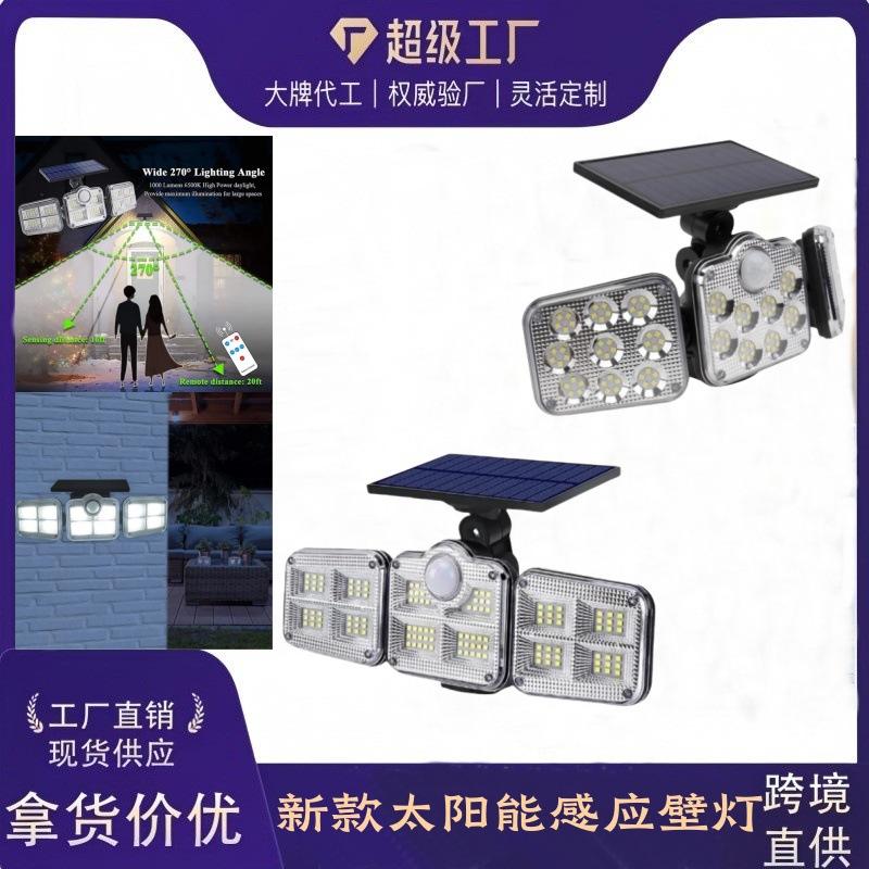 Lâmpada de parede de indução solar de três cabeças transfronteiriça, lâmpada de parede de indução LED, iluminação de pátio externo, lâmpada de rua