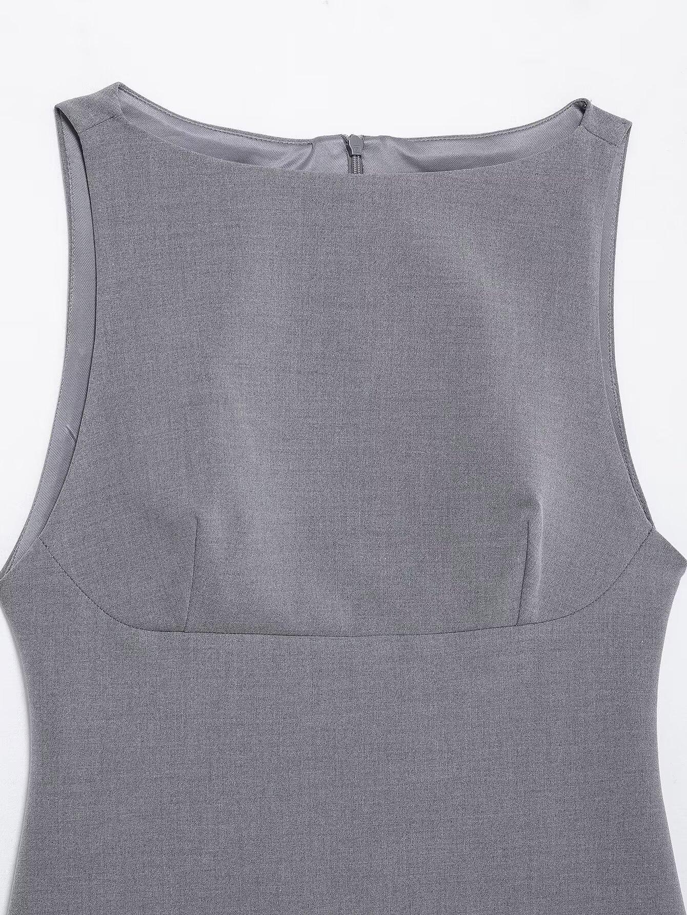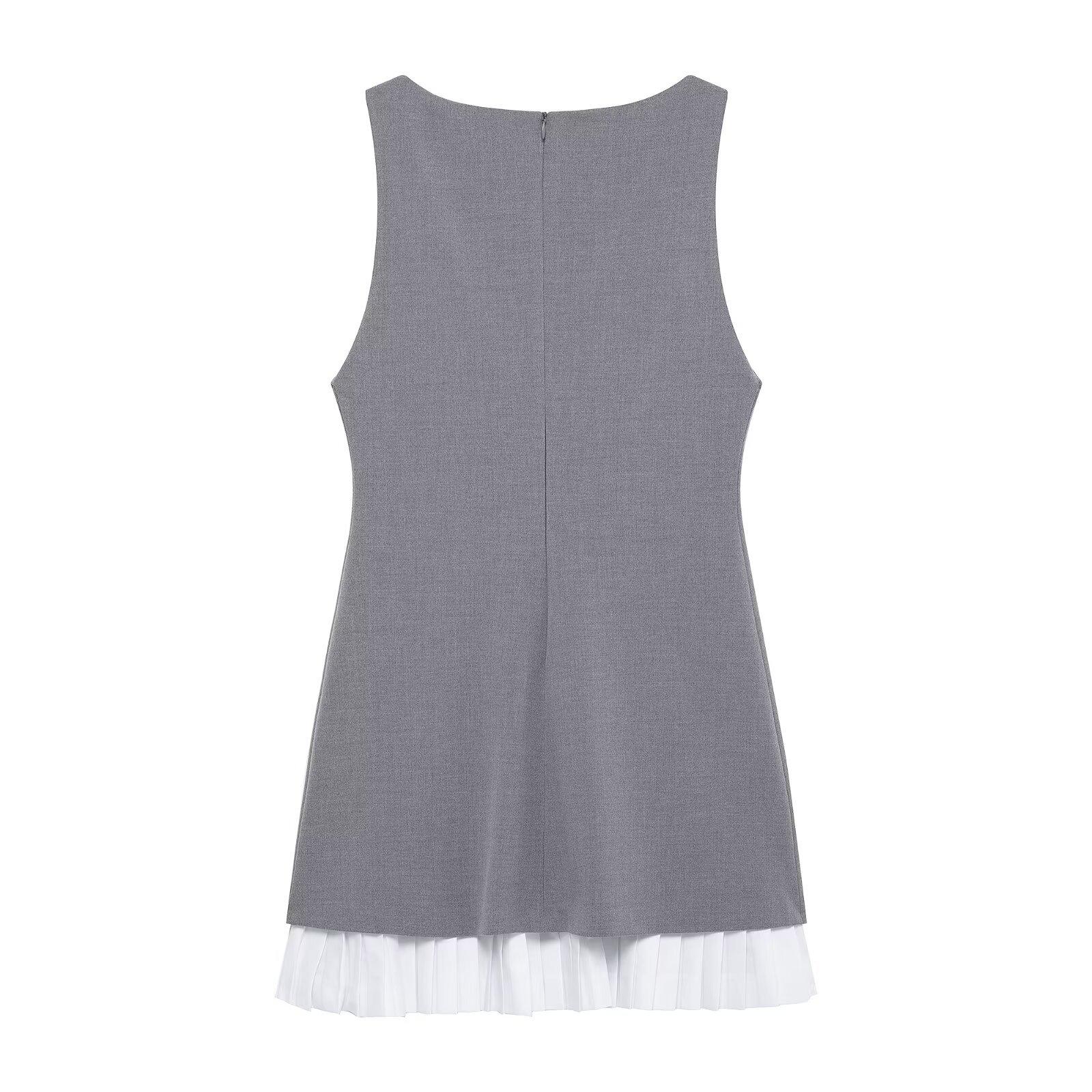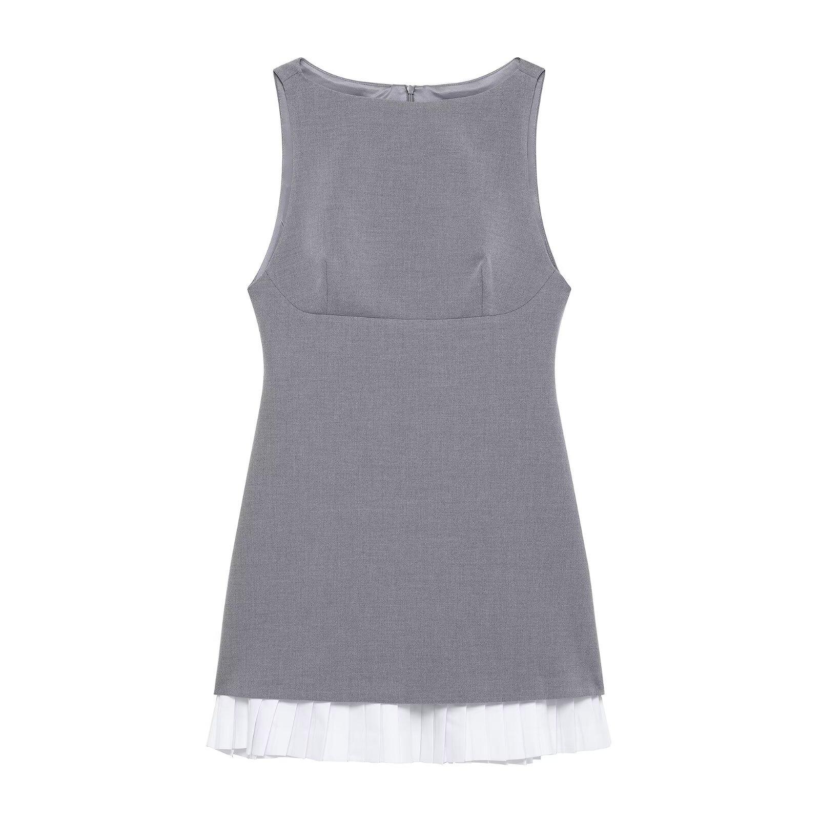 Vestido curto sem mangas com decote redondo e costura temperamento primavera e verão 2025 nova saia de moda feminina transfronteiriça europeia e americana
