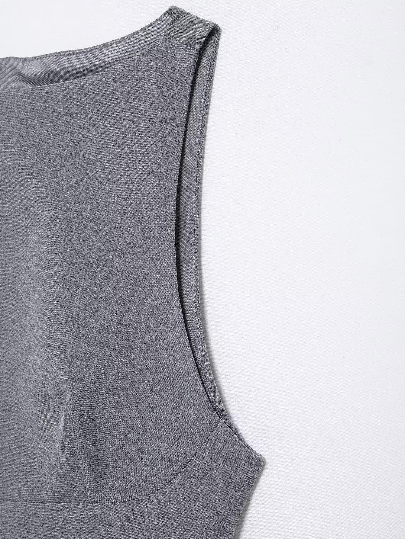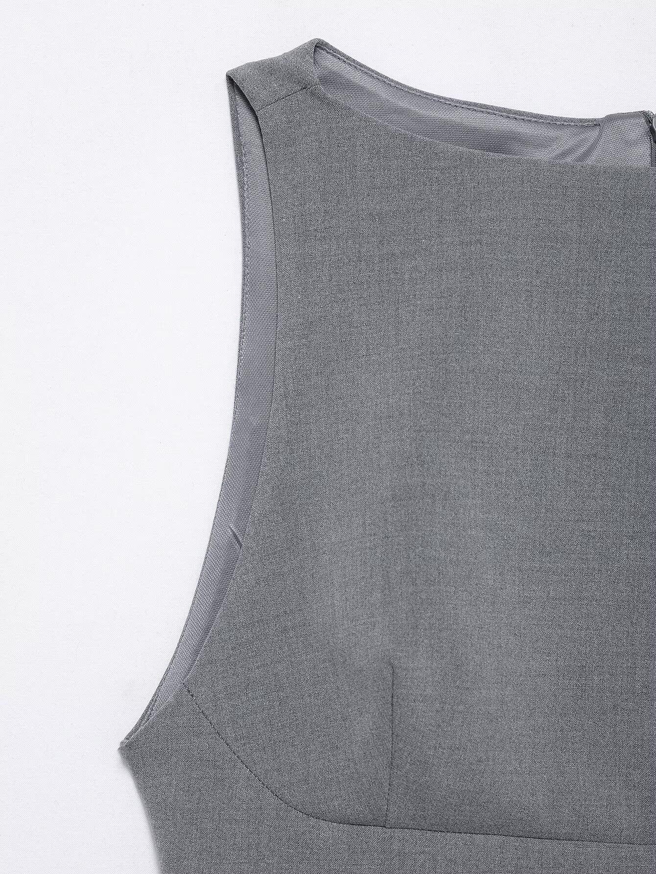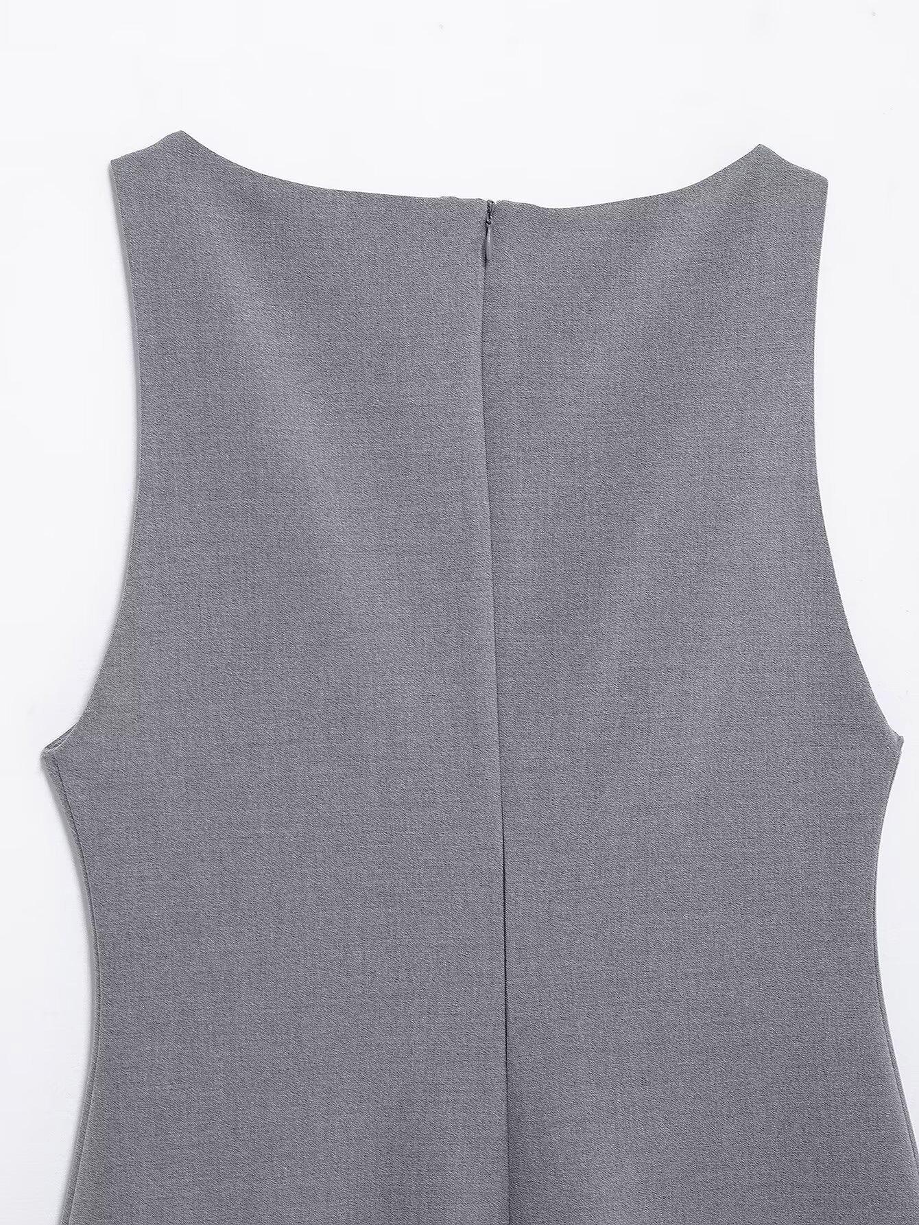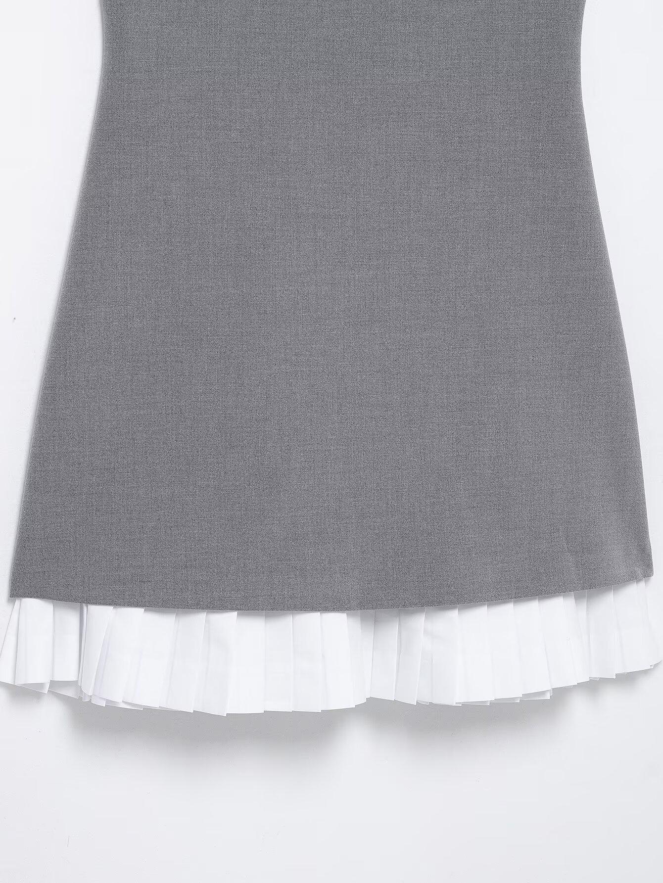 Vestido curto sem mangas com decote redondo e costura temperamento primavera e verão 2025 nova saia de moda feminina transfronteiriça europeia e americana