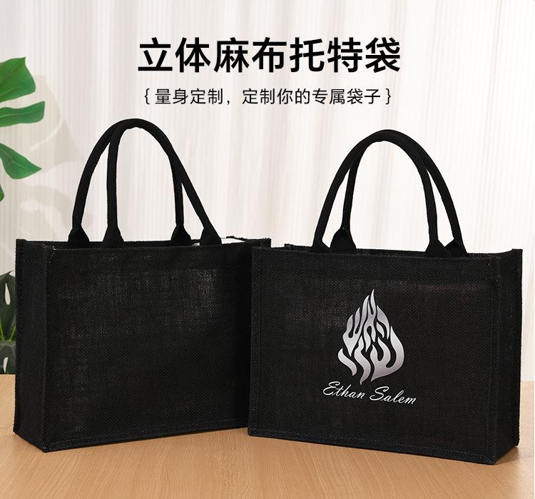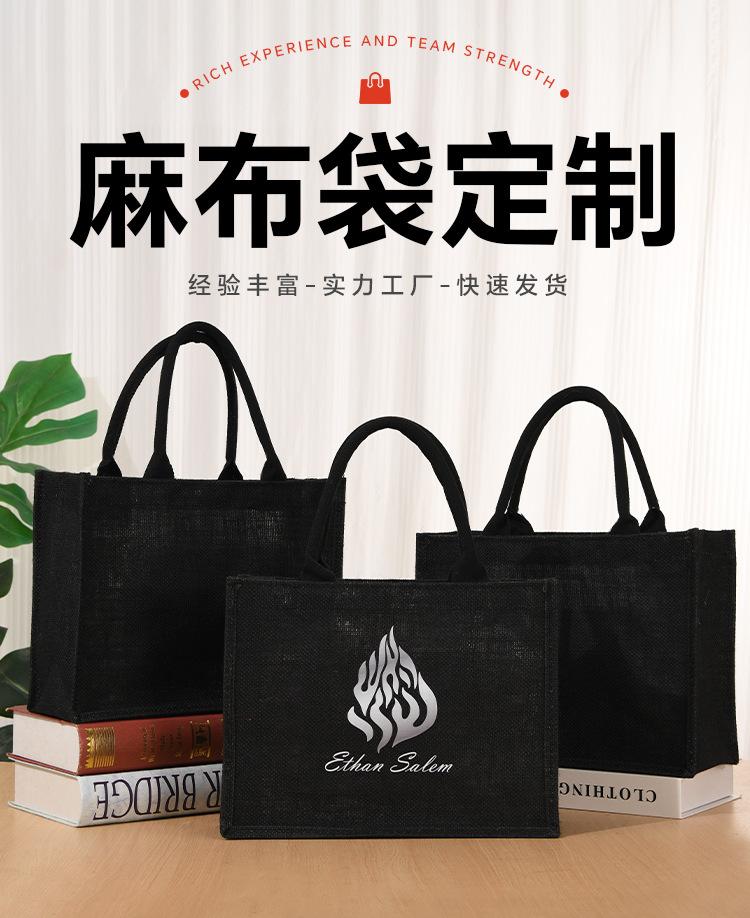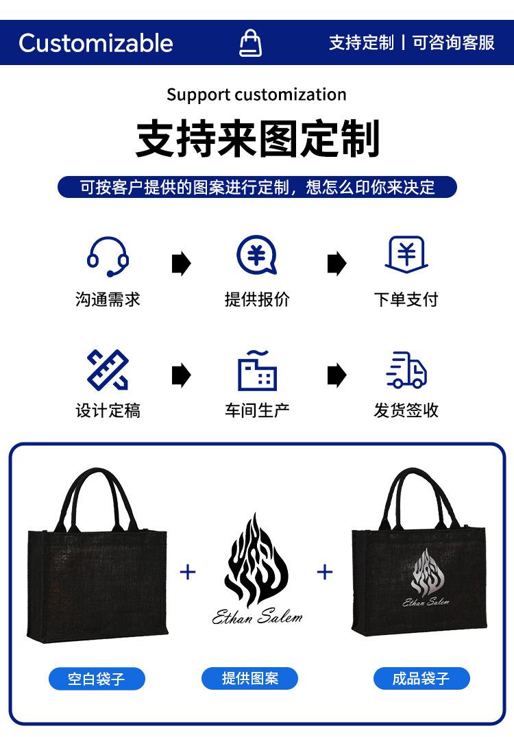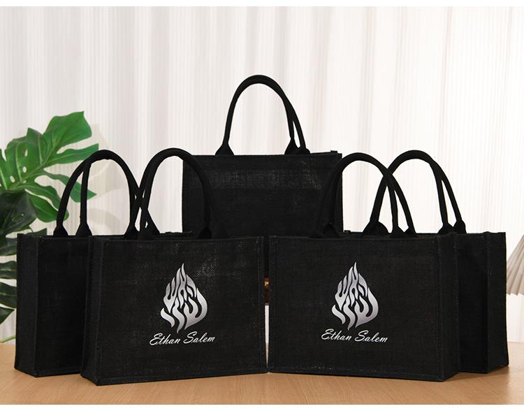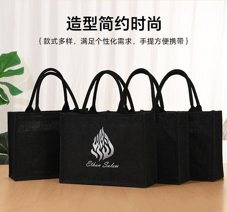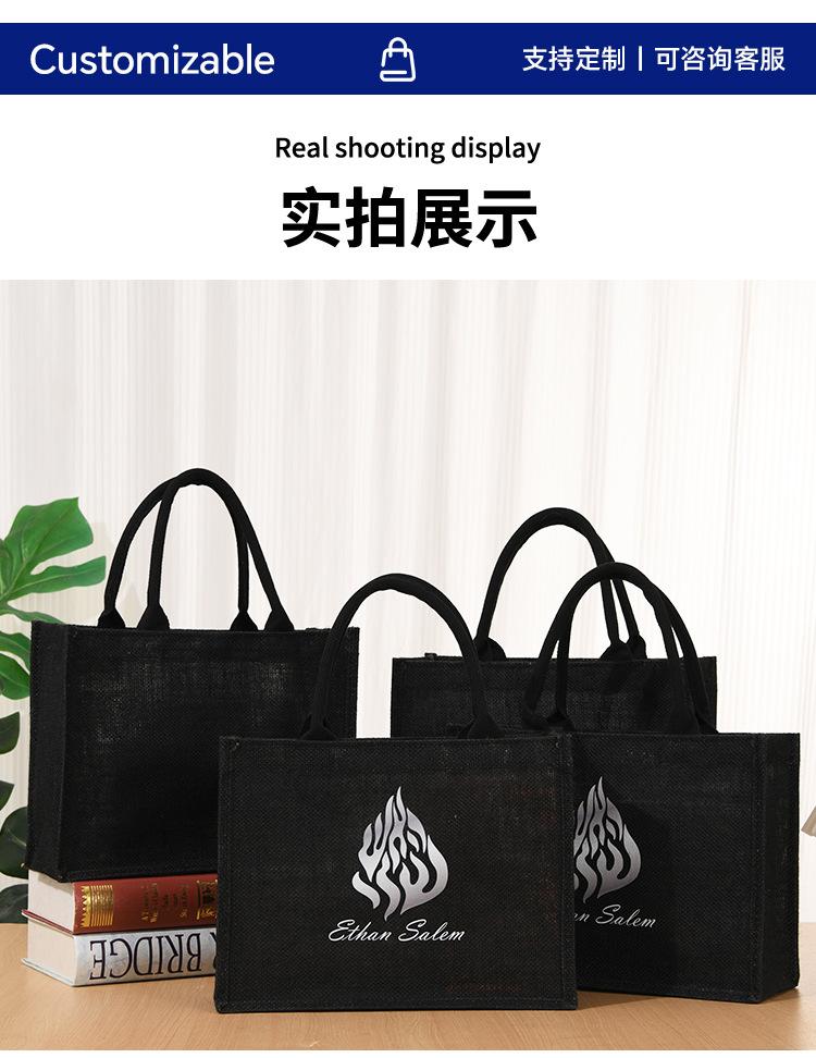 Bolsa de linho preta transfronteiriça com logotipo personalizado, bolsa de juta personalizada, bolsa de compras, sacola personalizada, simples e moderna