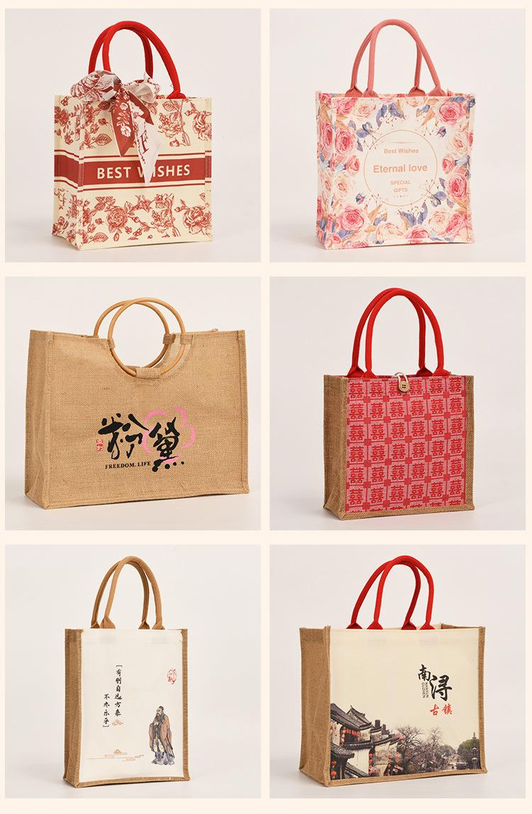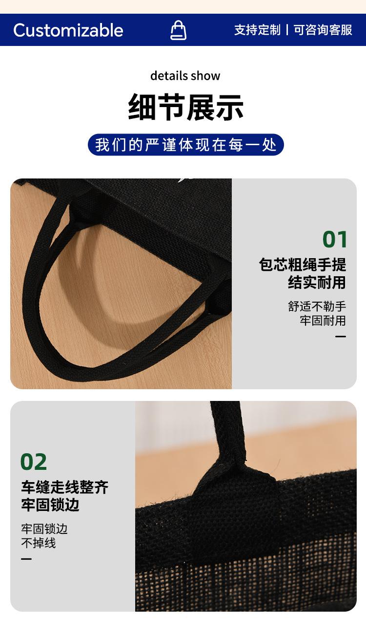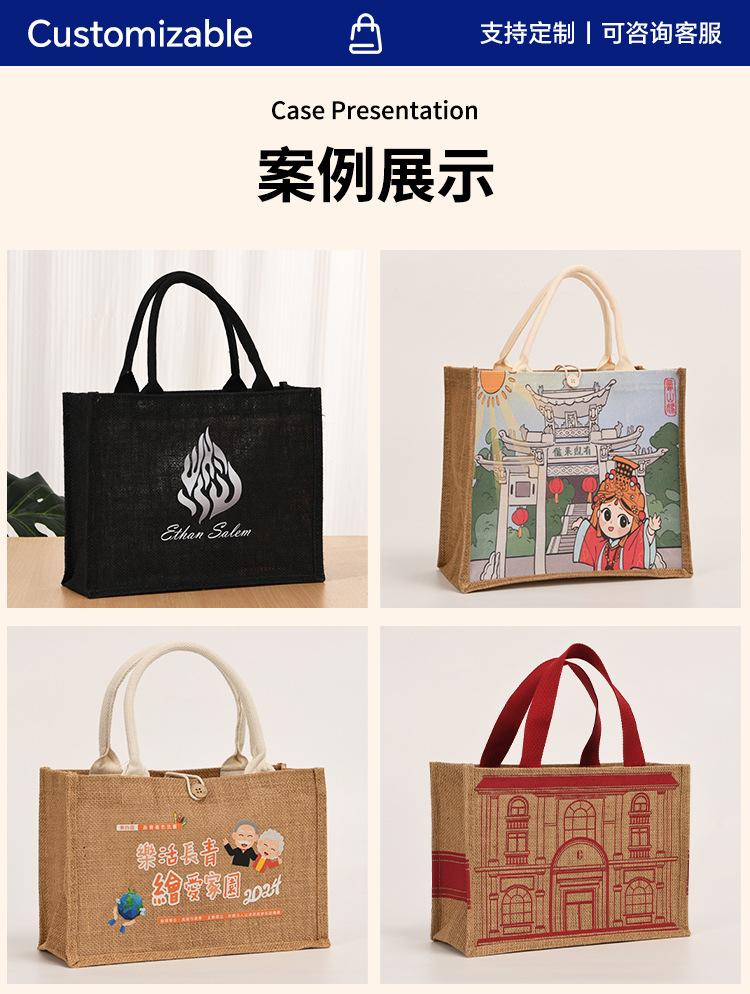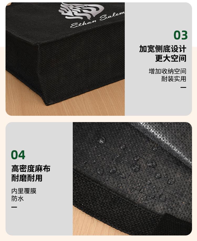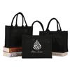 Bolsa de linho preta transfronteiriça com logotipo personalizado, bolsa de juta personalizada, bolsa de compras, sacola personalizada, simples e moderna