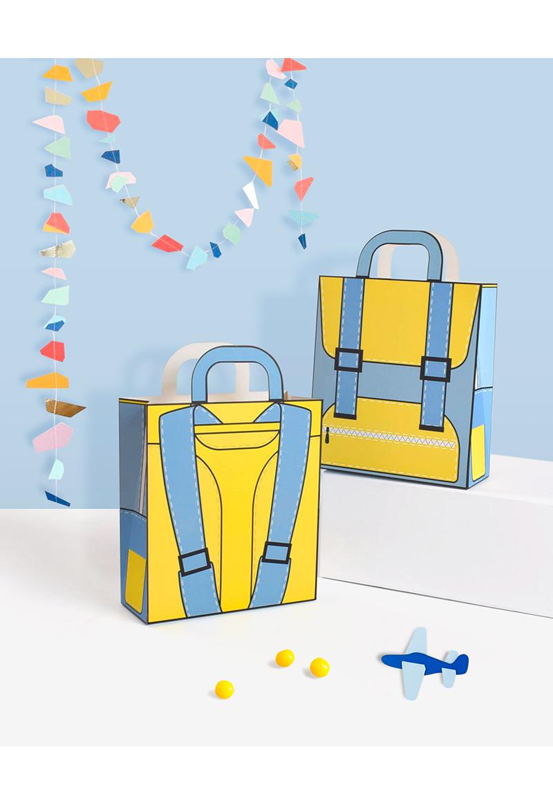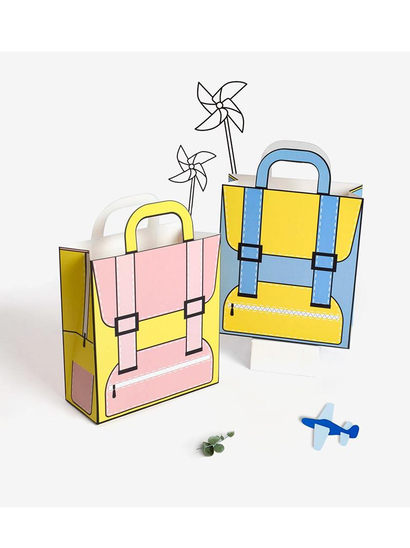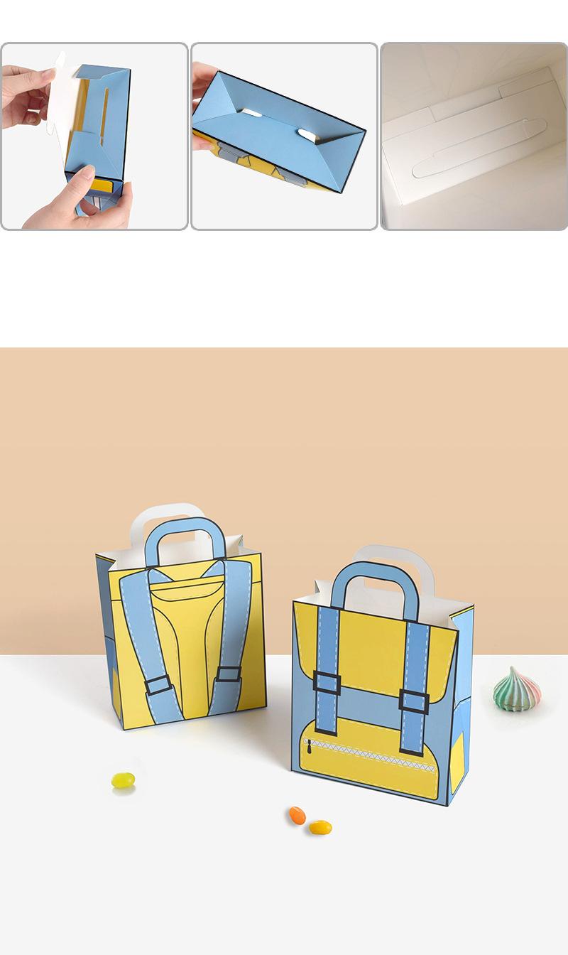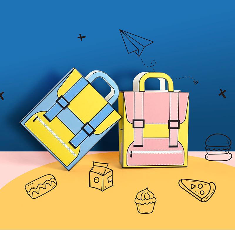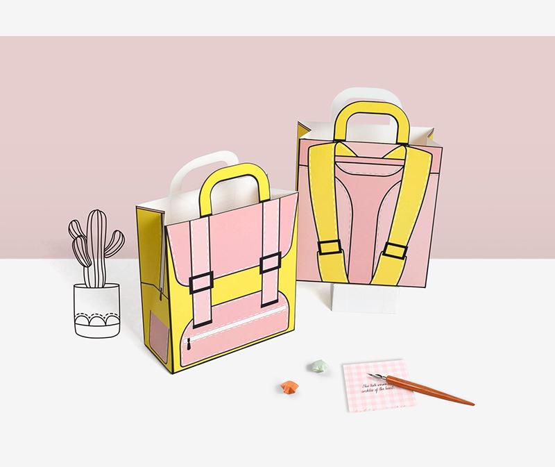 Embalagem de desenho animado colorido, bolsa escolar, formato de bolsa para assar, presente de aniversário infantil, sacola de doces e biscoitos