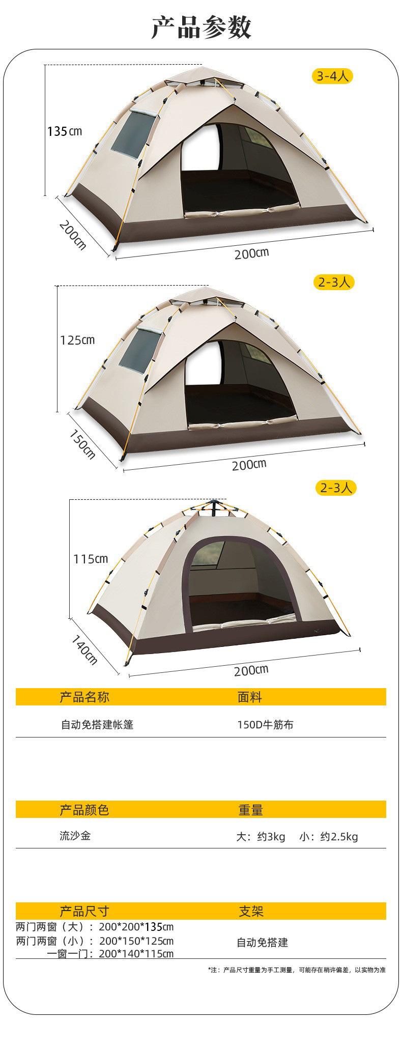Barraca de Camping ao Ar Livre Totalmente Automática Impermeável com Proteção Solar Pronta de Fábrica Abertura Rápida Camping Anti-Mosquito Barraca Portátil Atacado